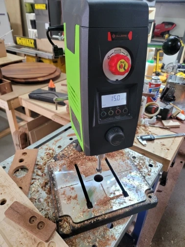 Классный станочек с лазерным прицелом. Внутри, как в погремушке что то дрягалось, пришлось разбирать. Мусор на 5 фото. В целом одни достоинства. Шпиндель рукой не удержать. Цифровой дисплей, подсветка, всё современно. Взял в комплекте с тисками для фрезерных работ. Доволен! Доставка до двери через неделю.