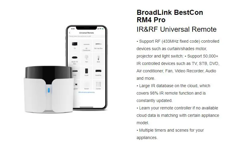 Пульт дистанционного управления Broadlink BestCon RM4C PRO, универсальный Wi-Fi ИК радиочастотный контроллер для умного дома через приложение Broadlink, работает с Alexa Google