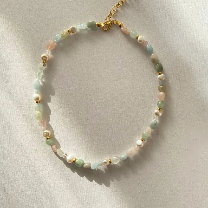 Ожерелье с цветными камнями в богемном стиле, с зеленым, розовым, голубым камнем, креативный дизайн, ювелирные изделия, подарки для женщин, жемчуг, модный чокер, 2021