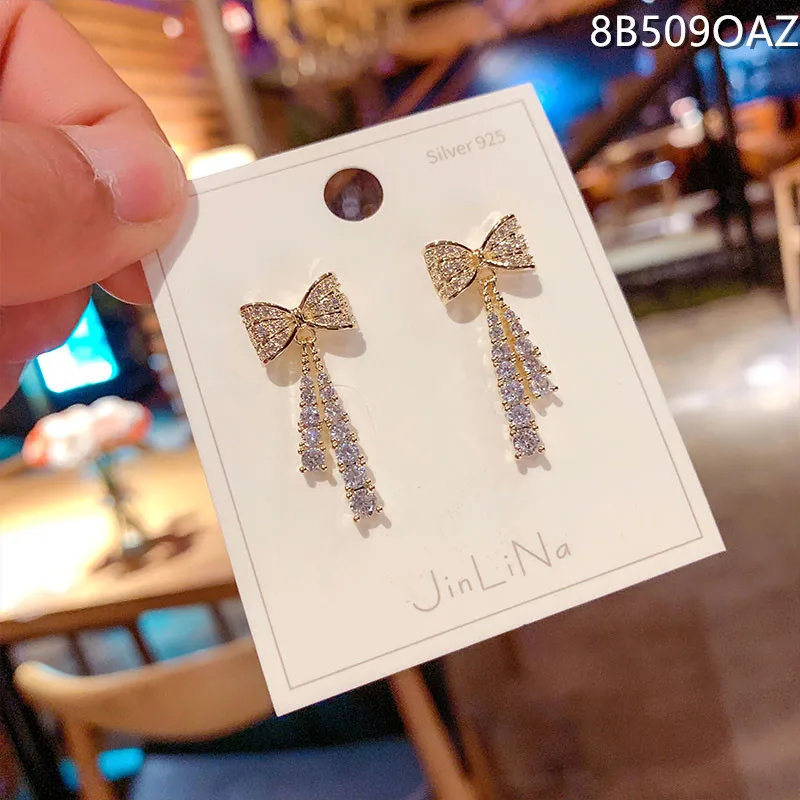 Новое поступление 2021, модные длинные серьги с металлической кисточкой, корейские темпераментные ювелирные изделия, элегантные женские серьги с бантом и кристаллами