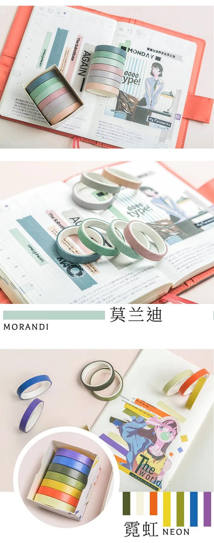 7 шт.лот Morandi однотонная бумага Washi лента клейкая лента Diy Ск...