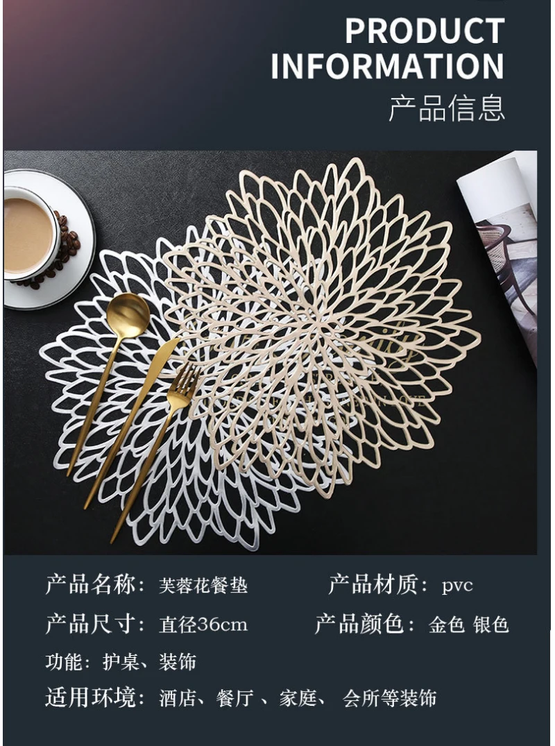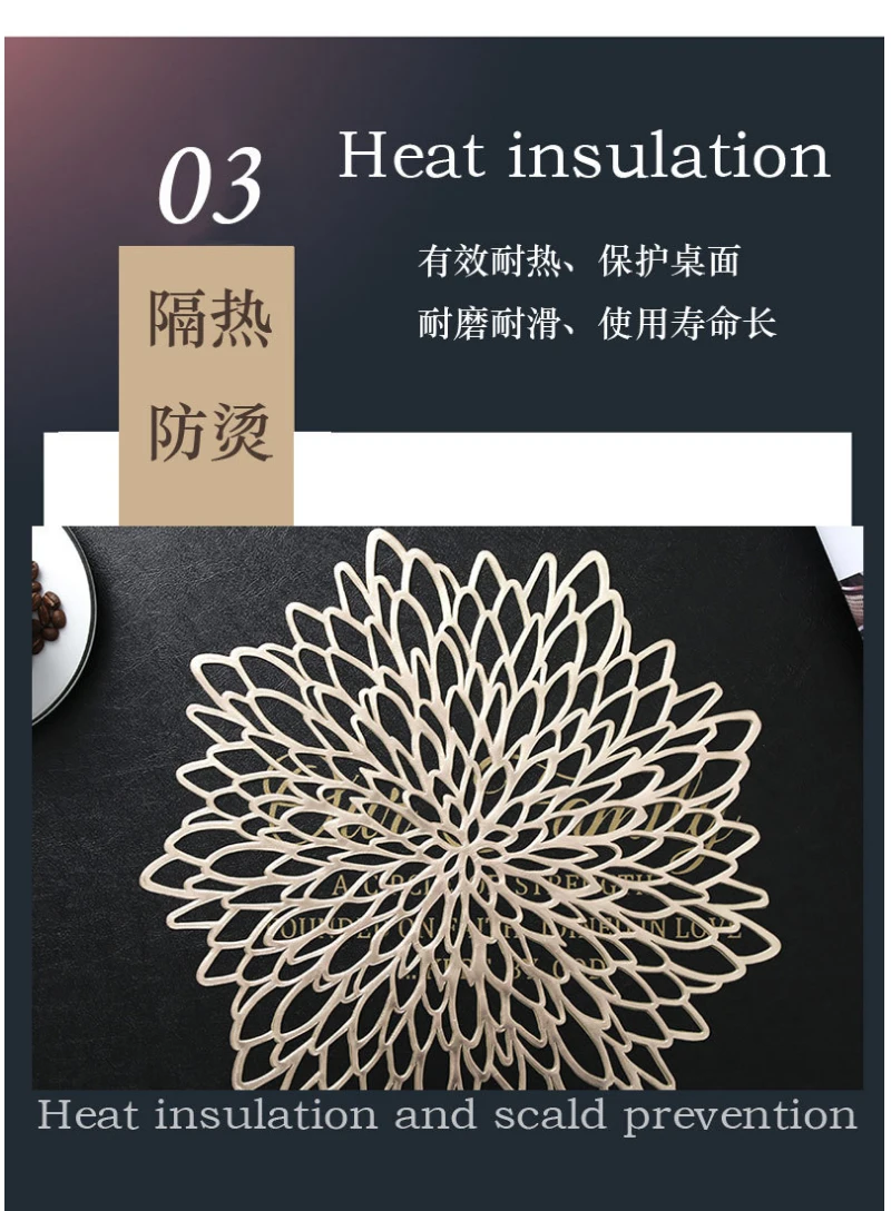 64 шт Круглые столовые приборы для ресторана полые ПВХ украшения коврик для еды анти-горячий обеденный стол линия коврик для стейка тарелка цветы