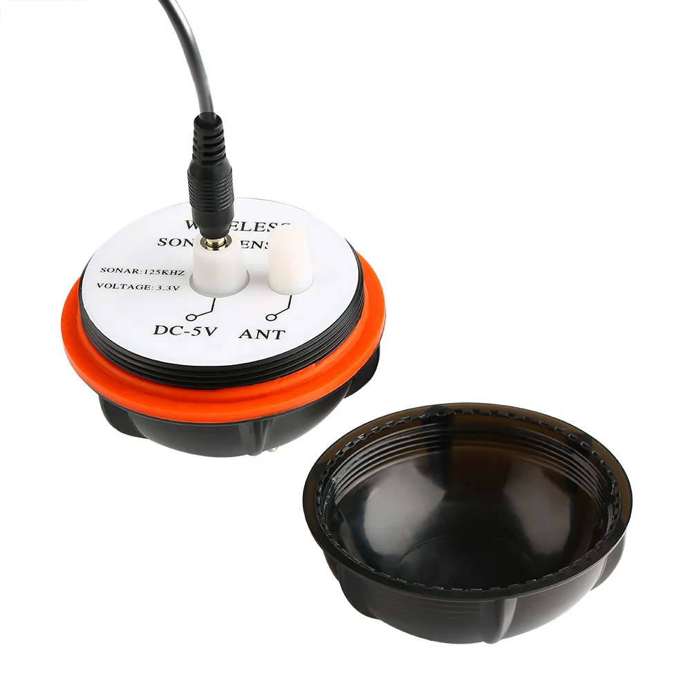 Примечание:В гидролокаторном датчике есть два небольших отверстия (Сферический детектор), с помощью резьбы два отверстия можно привязать к лодке с дистанционным управлением или в ночном стационарном поплавковом режиме или привязать к вращающемуся.
