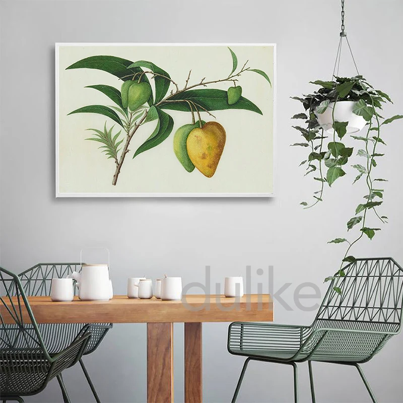 Постер с тропическими фруктами, манго, китайская винтажная Картина на холсте 19-го века, настенные декоративные картины для кухни, столовой