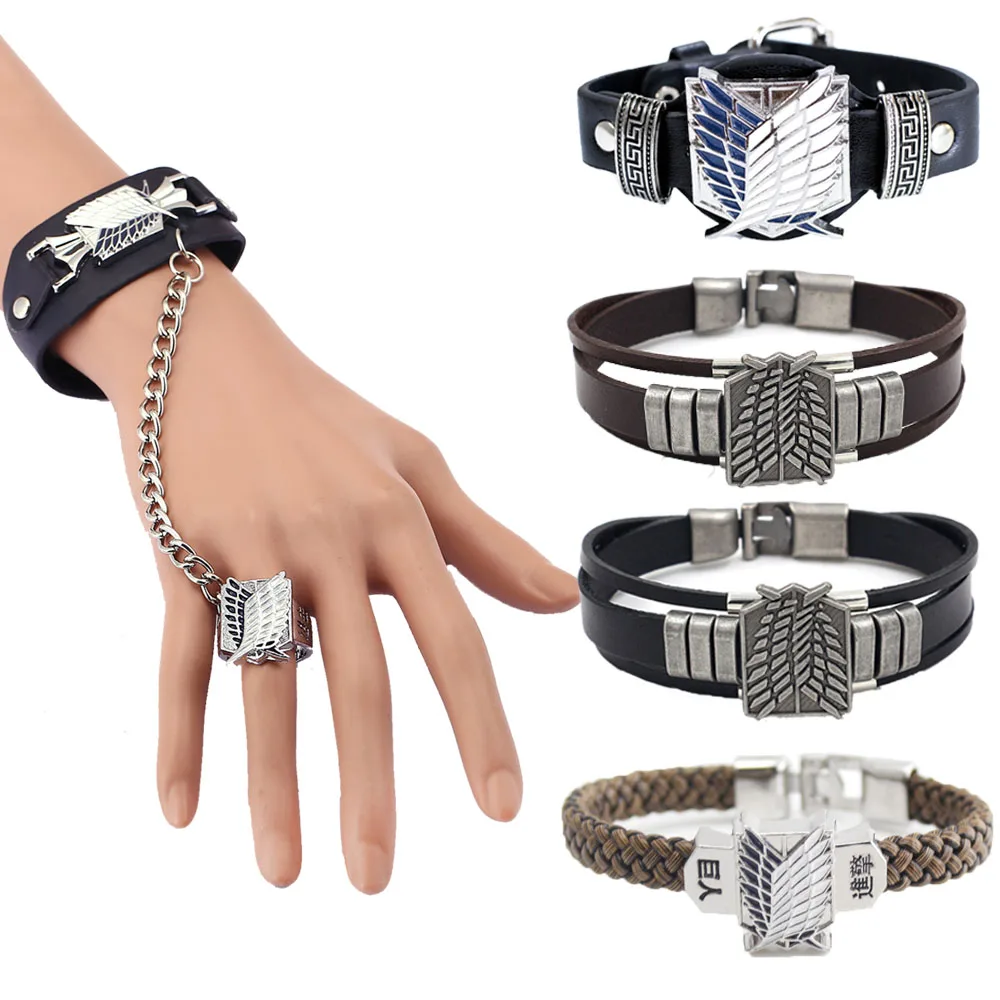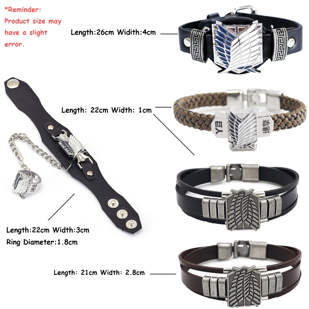 Аниме: Атака на ТитановИсточник: корпус обзора крыльев свободыМатериал: сплав + кожаРазмер: как на картинкеЦвет: как на фотоПосылка: 1 браслет AOT