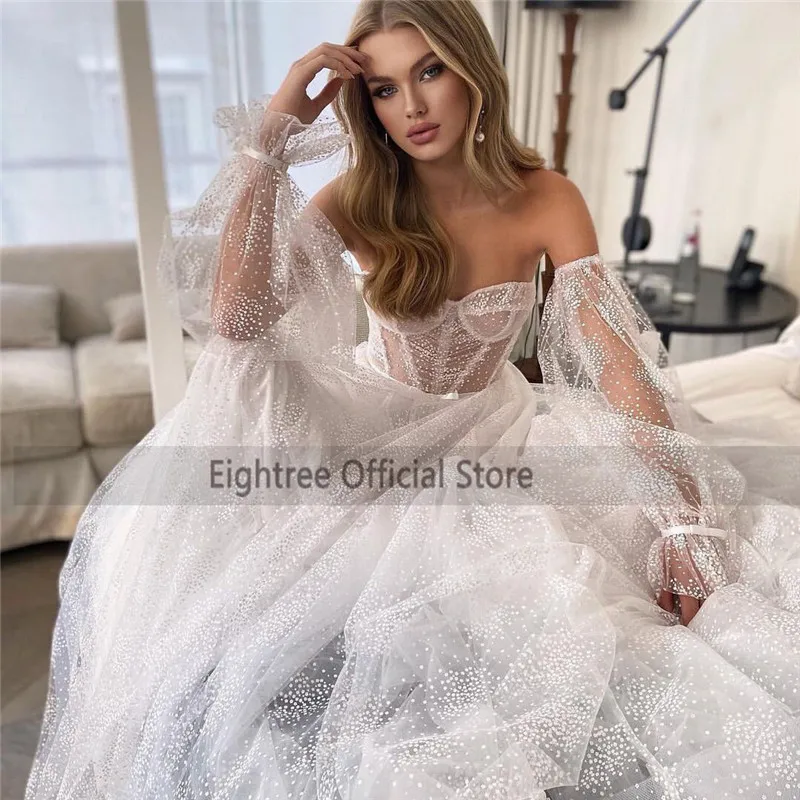 Женское свадебное платье в горошек, с открытыми плечами и шлейфом, ...