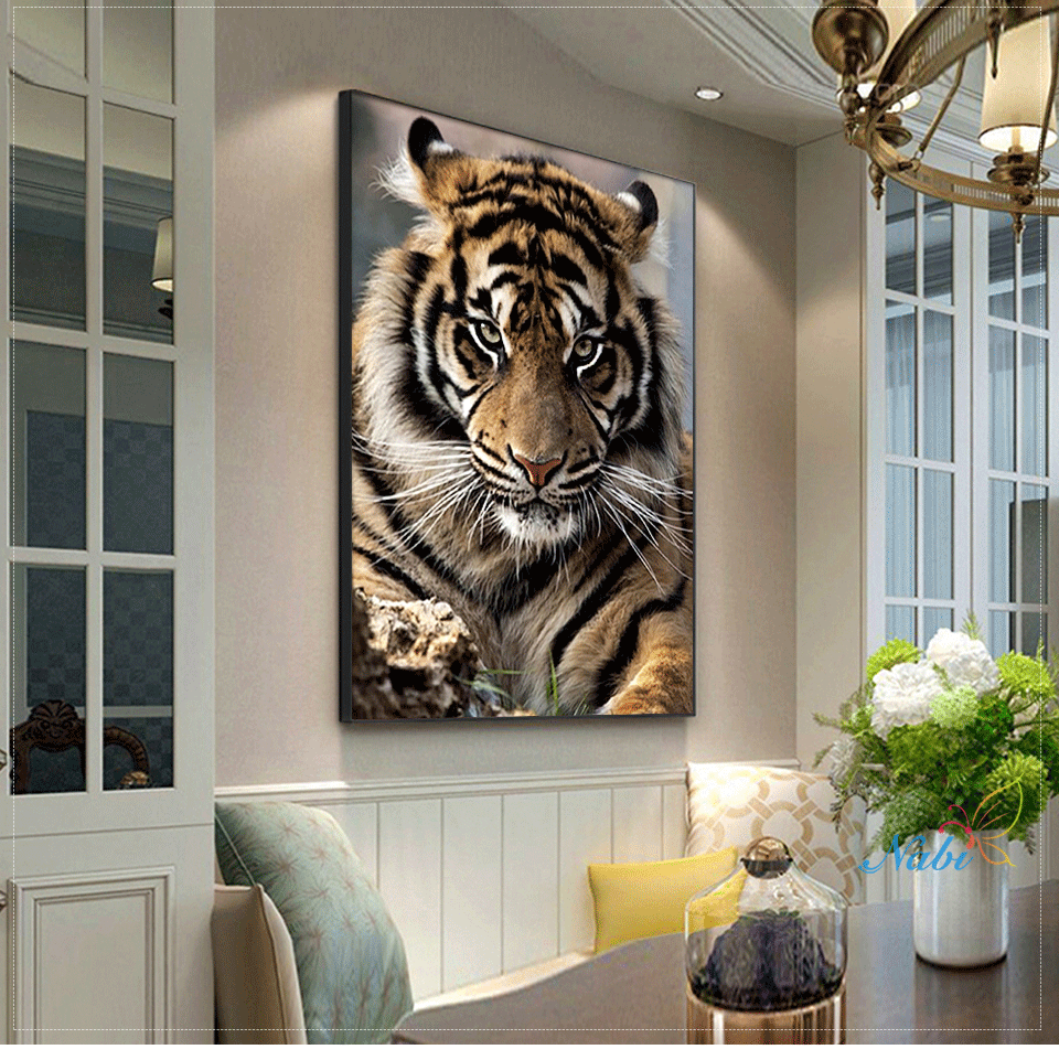 Алмазная вышивка Nabi 5D, алмазная живопись сделай сам, тигр, полноразмернаяКруглая Мозаика, живопись, вышивка крестиком, украшение, подарок, искусство