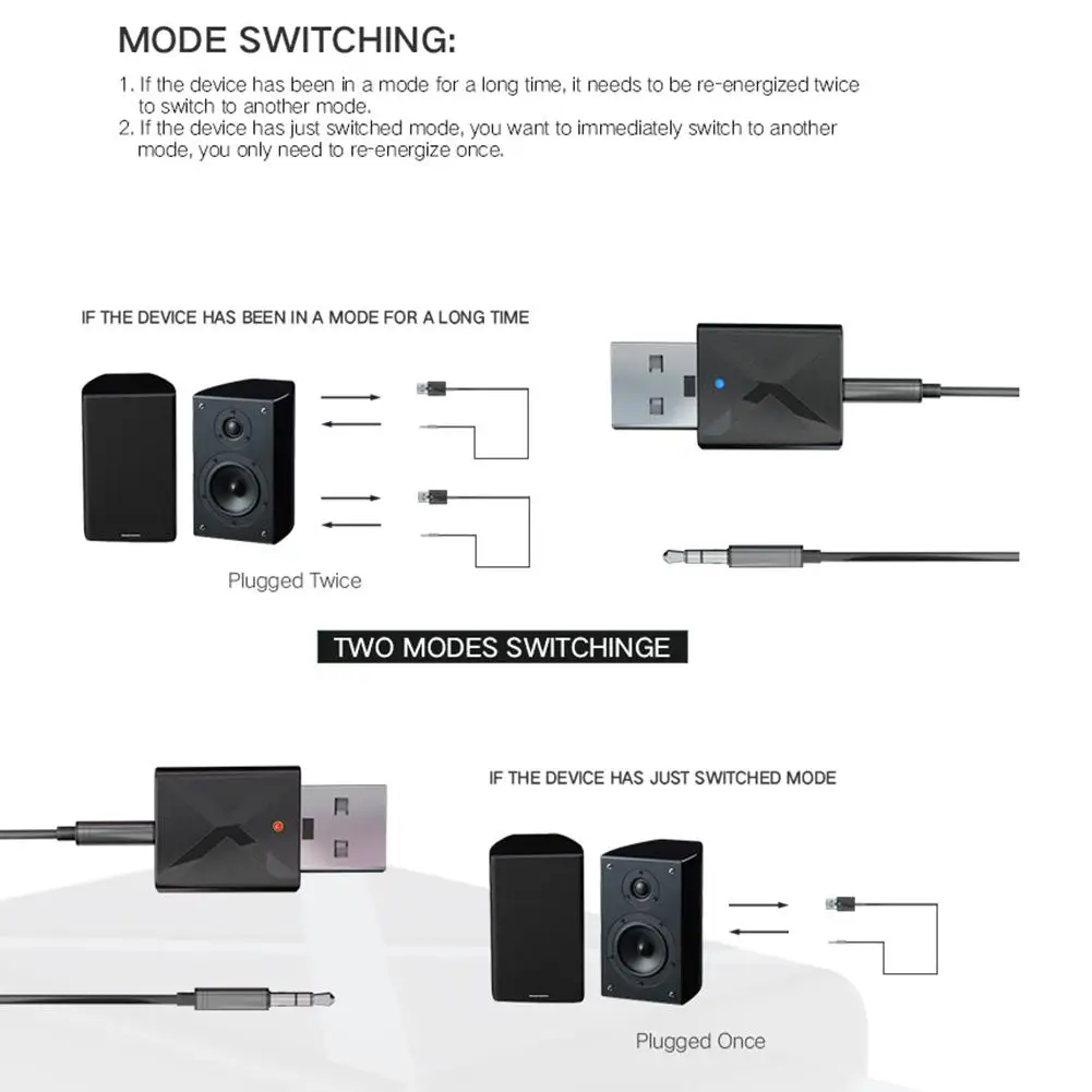 4. Переключение режима:1. Если устройство долгое время находится в режиме, его необходимо повторно заряжать дважды, чтобы переключиться на другой режим.2. Если устройство только что переключило режим, вы хотите немедленно переключиться на другой режим, вам нужно только повторно заряжать один раз.5. Метод сопряженияРежим RX: имя сопряжения: KN320, найдите KN320 в настройках Bluetooth телефона для сопряжения. Синий светильник мигает во время процесса сопряжения, и синий светильник перестает мигать после успешного сопряжения. Подключите устройство к аудиоустройству с 3,5 аудио кабель.