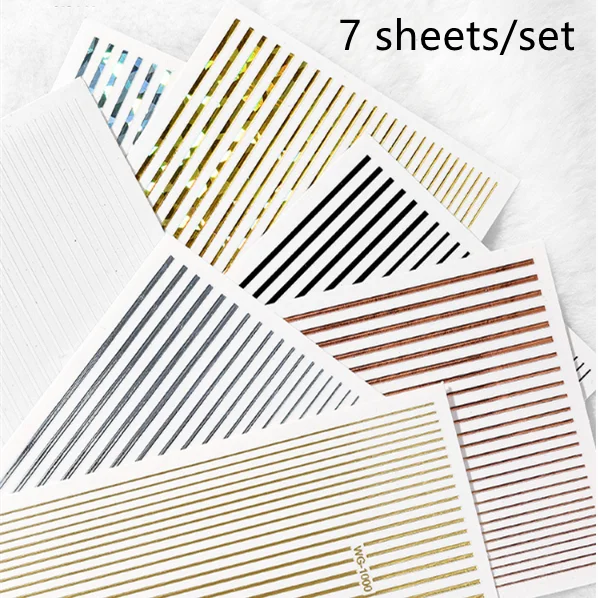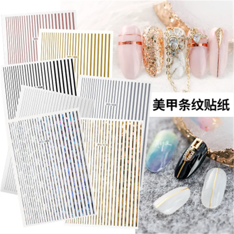 1 лист ногтей полосы Стикеры s черныйзолотой с розовым оттенкомсеребристая металлическая полоска клей для накладных ногтей DIY Фольга Типсы, наклейки на ногти Стикеры наклейки
