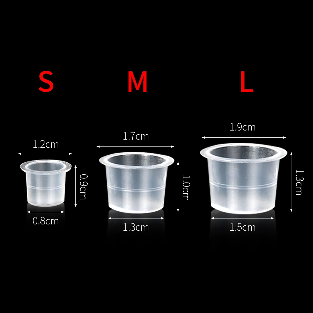Чернила для татуировки S M L, колпачок, 100 шт., держатель пигмента, одноразовый контейнер, размер чернила PMU кольца, пластиковые белые для микроблейдинга пигмента