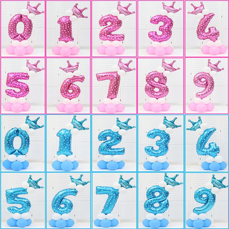 16 шт.упак., розовый, синий, 0-9 цифр, Большие Гелиевые цифры, Детские праздники, украшение, день рождения, игрушка, шапка для детей
