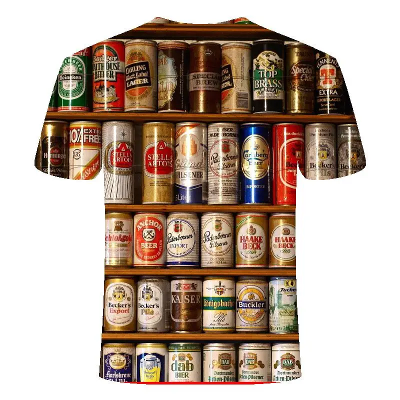 Новые стильные 3D футболки с принтом пивных банок хип-хоп с круглым...