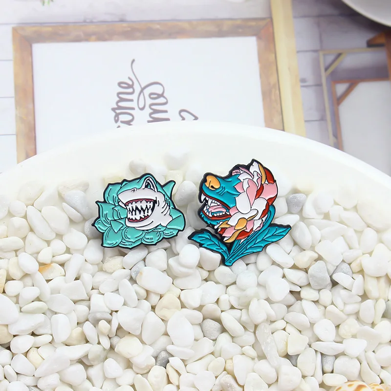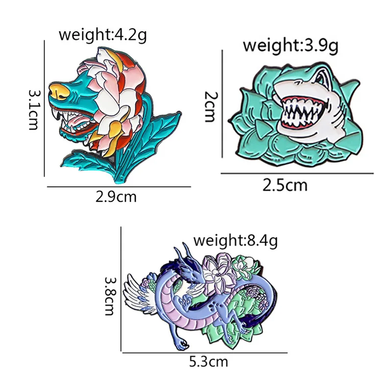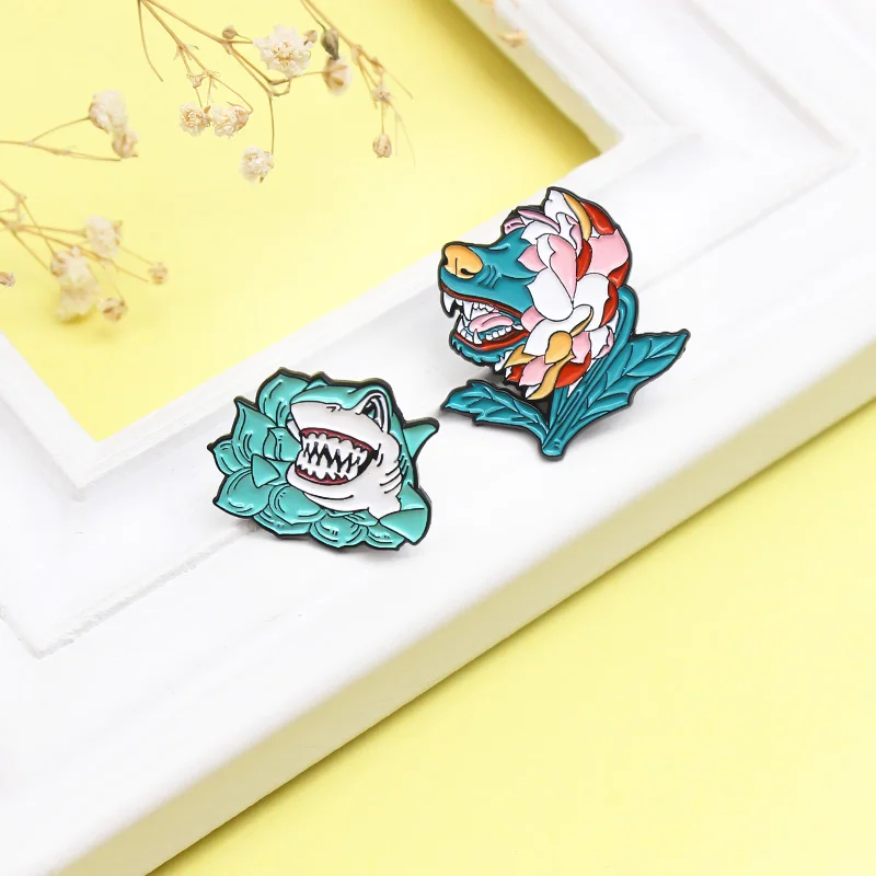 Брошь в виде летающего дракона, волка, собаки, акулы, цветка, животных, эмалированная булавка, сказка, брошь на рюкзак, лацкан, значок, милая Лотос, животные, ювелирное изделие, подарок