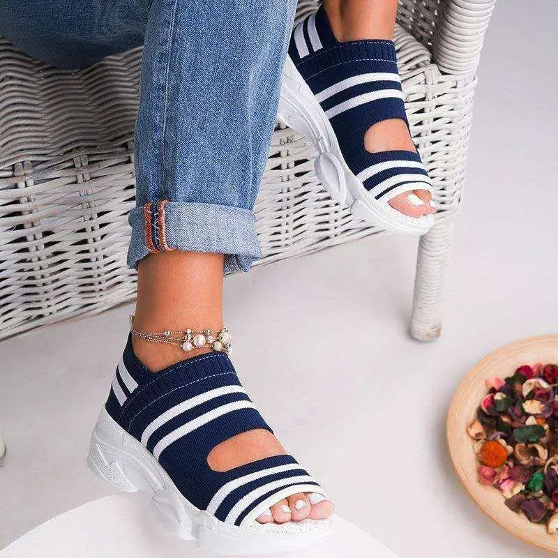 Сандалии женские на танкетке, босоножки на платформе, без шнуровки, вязаные кроссовки с открытым носком, повседневная обувь, лето, 2021