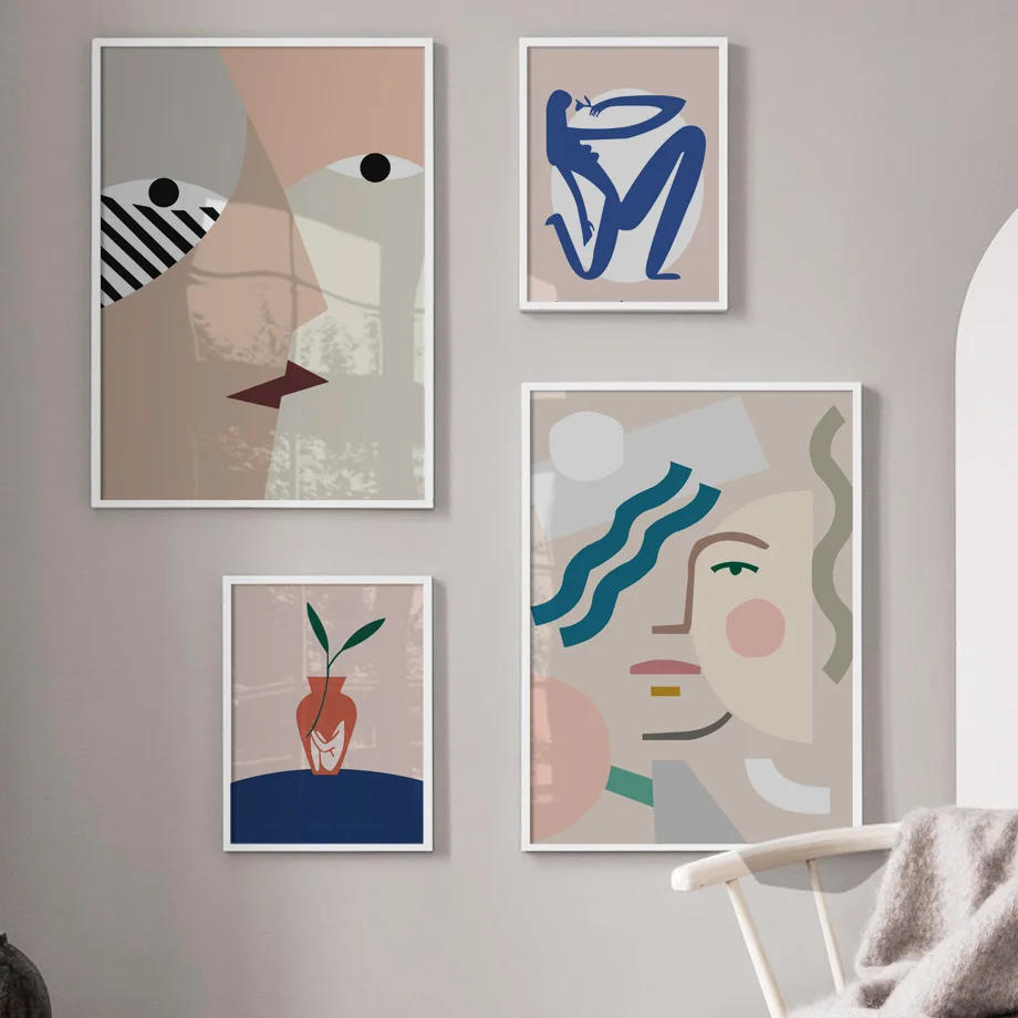 Абстрактные северные постеры с изображением девушки Матисса коралло...