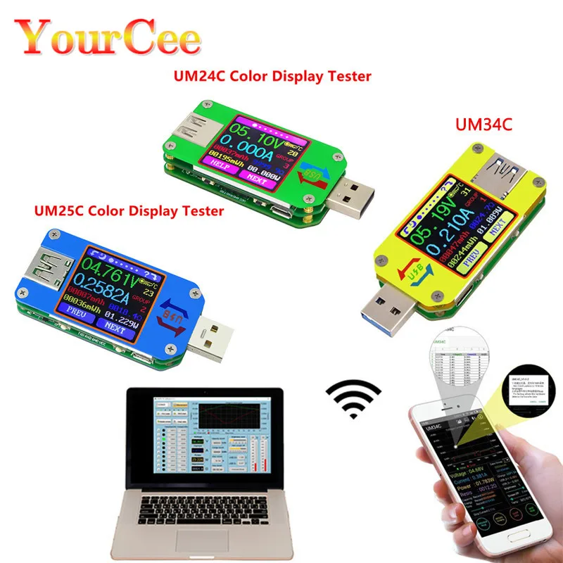 Usb-тестер с цветным ЖК-дисплеем UM34UM34C UM24UM24C UM25UM25C, изм...