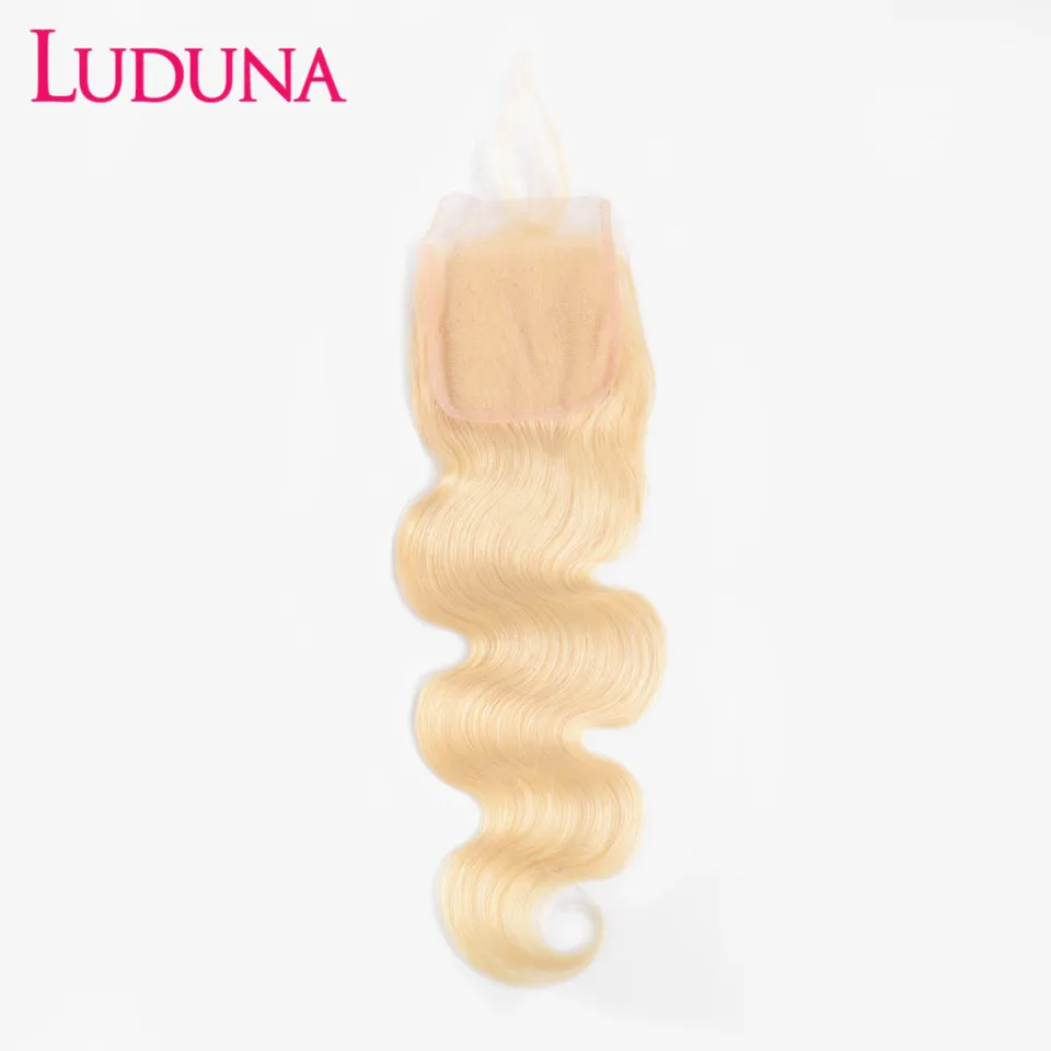 Luduna кружевная застежка, бразильское тело с детскими волосами, 100% человеческие волосы, 613 блонд, 4*4, волосы Реми, кружевная Фронтальная застежка