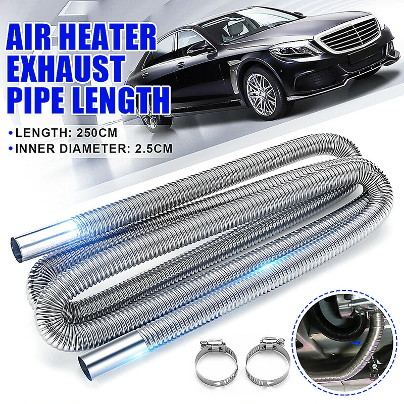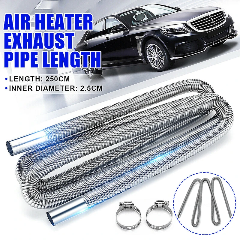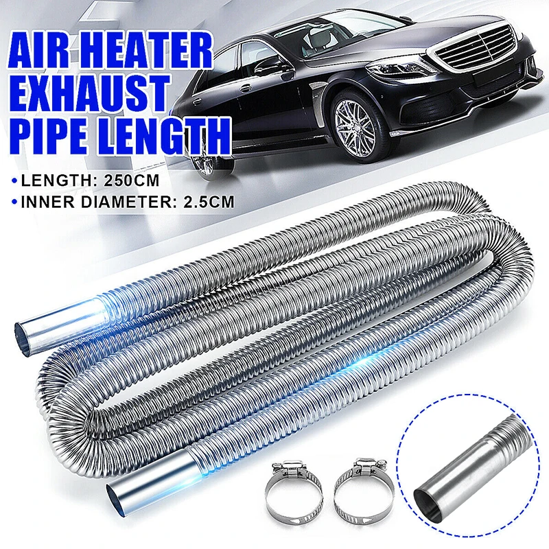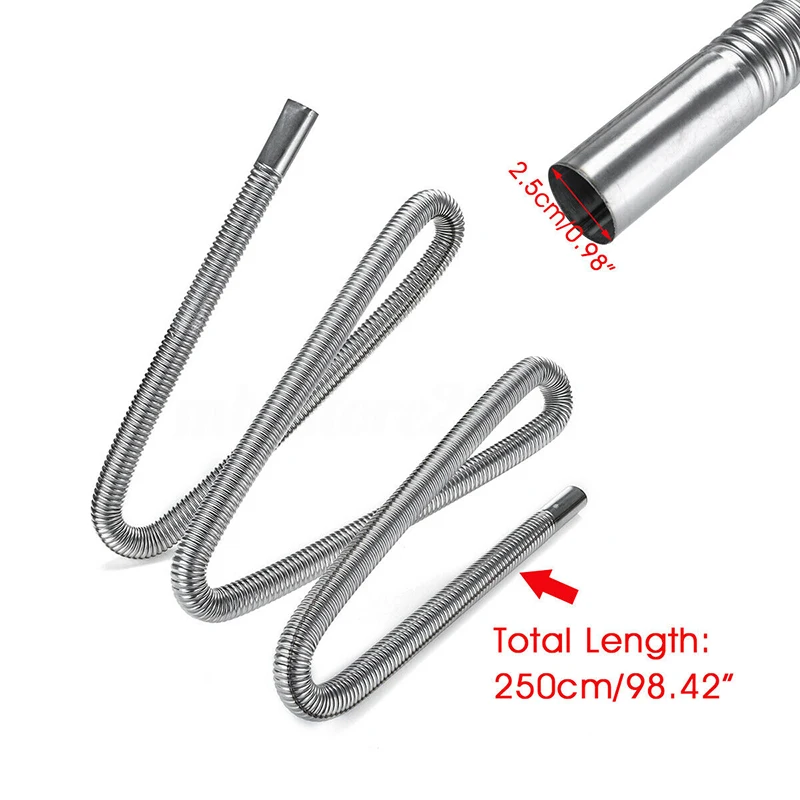 Автомобильный обогреватель, выхлопная труба, шланг для вентиляционного отверстия, трубка с зажимом, воздушный обогреватель из нержавеющей стали, выхлопные трубы для воздушных дизельных парковочных обогревателей, 250 см