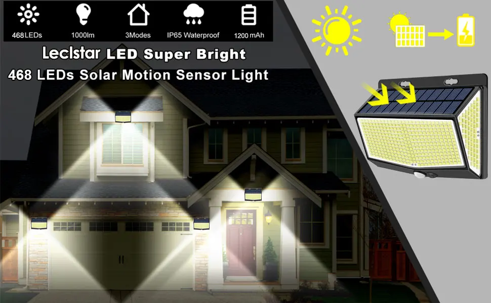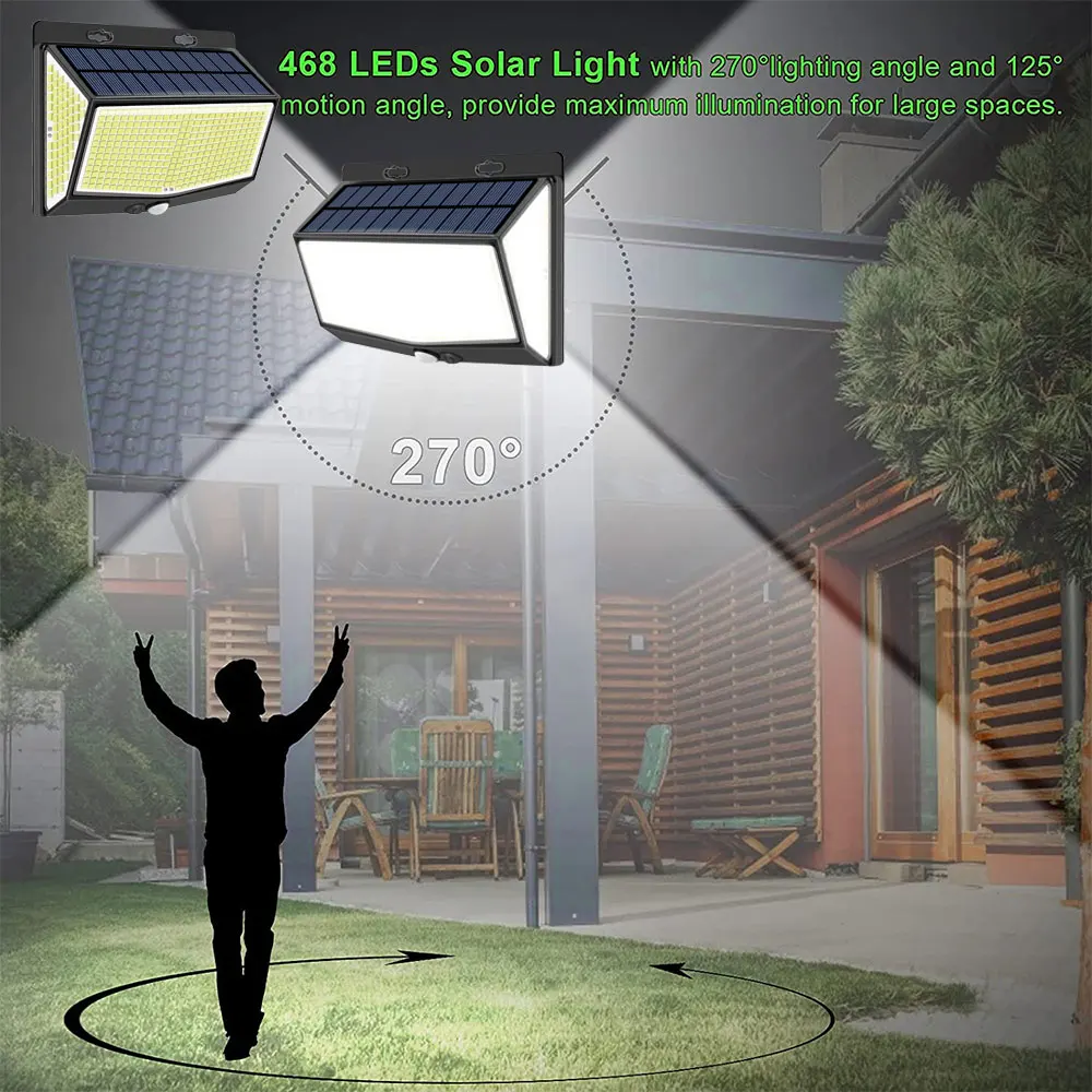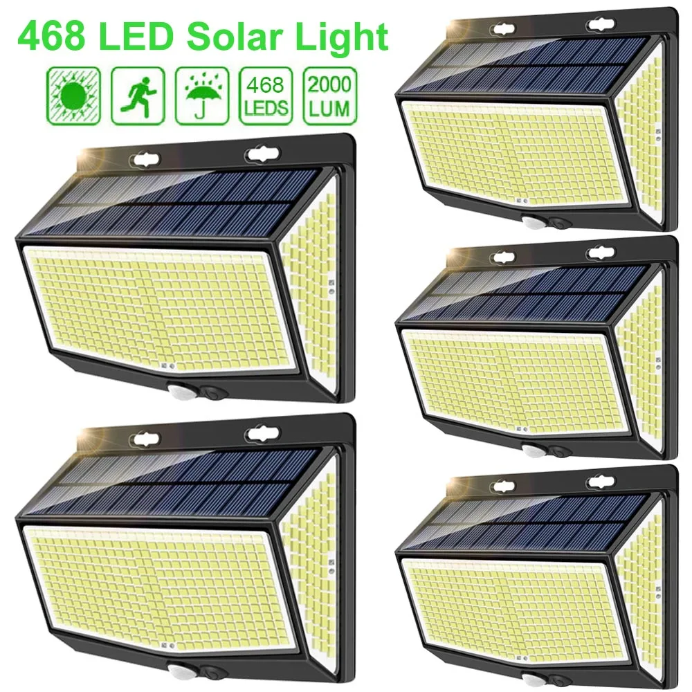 Уличная лампа на солнечной батарее, 468 светодиосветодиодный, для украшения сада, палубы, двора, гаража, улицы, стены, 3 режима освещения