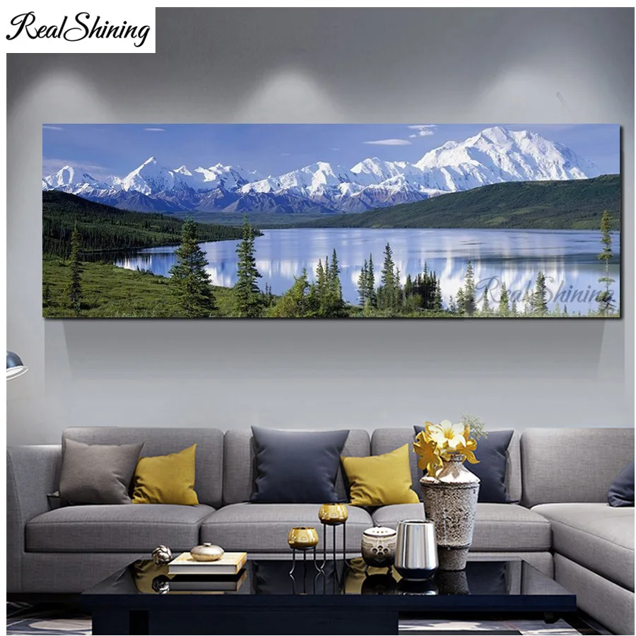 Алмазная 5d-картина сделай сам, большая вышивка с мотивом летнего пейзажа, Снежной Горы, озера, ландшафта, мозаика для парка, F981