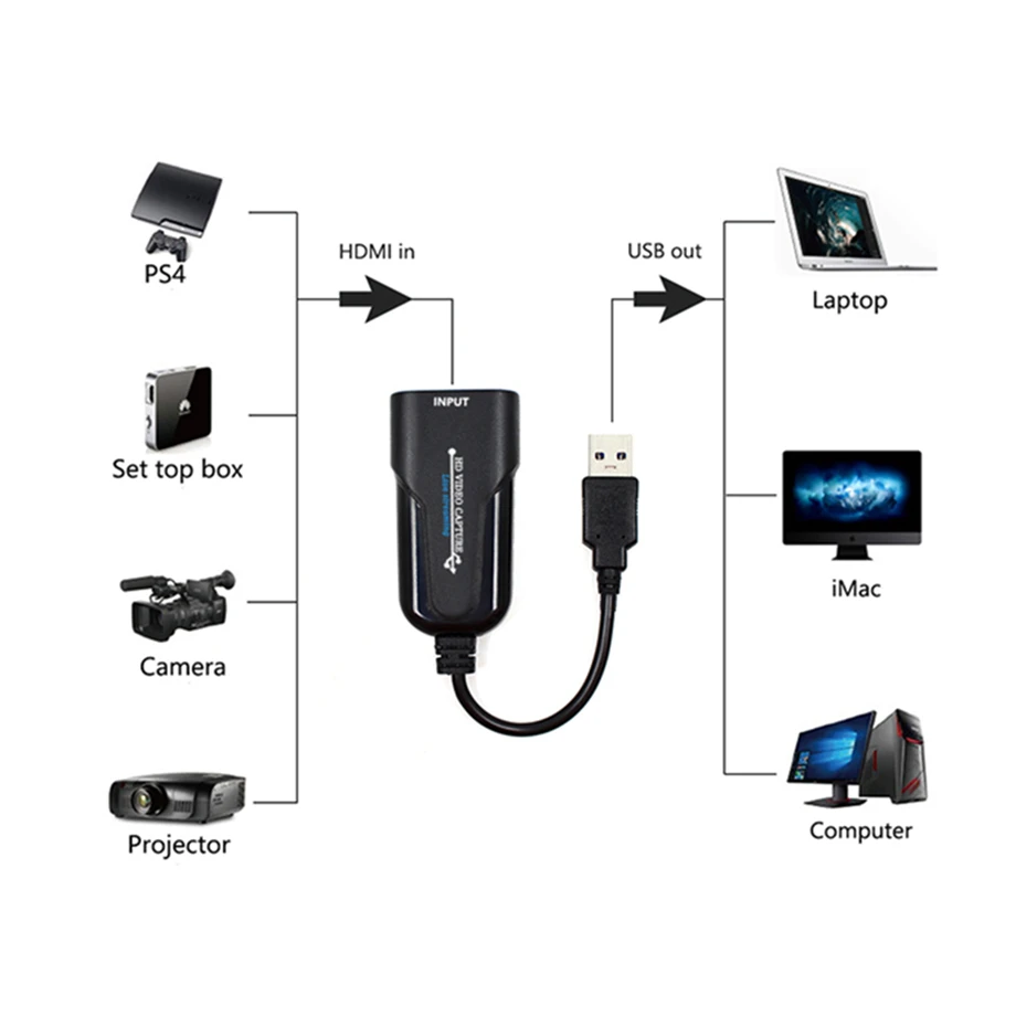 PzzPss Карта видеозахвата HDMI к USB 3,0 карточка захвата игры 1080P HDMI видео надежный адаптер потоковой передачи для прямых трансляций