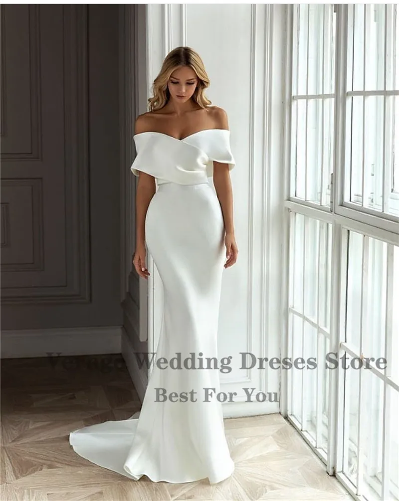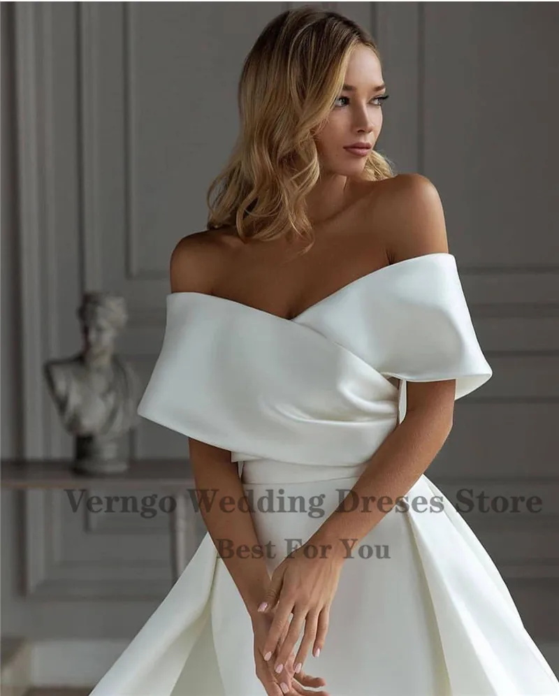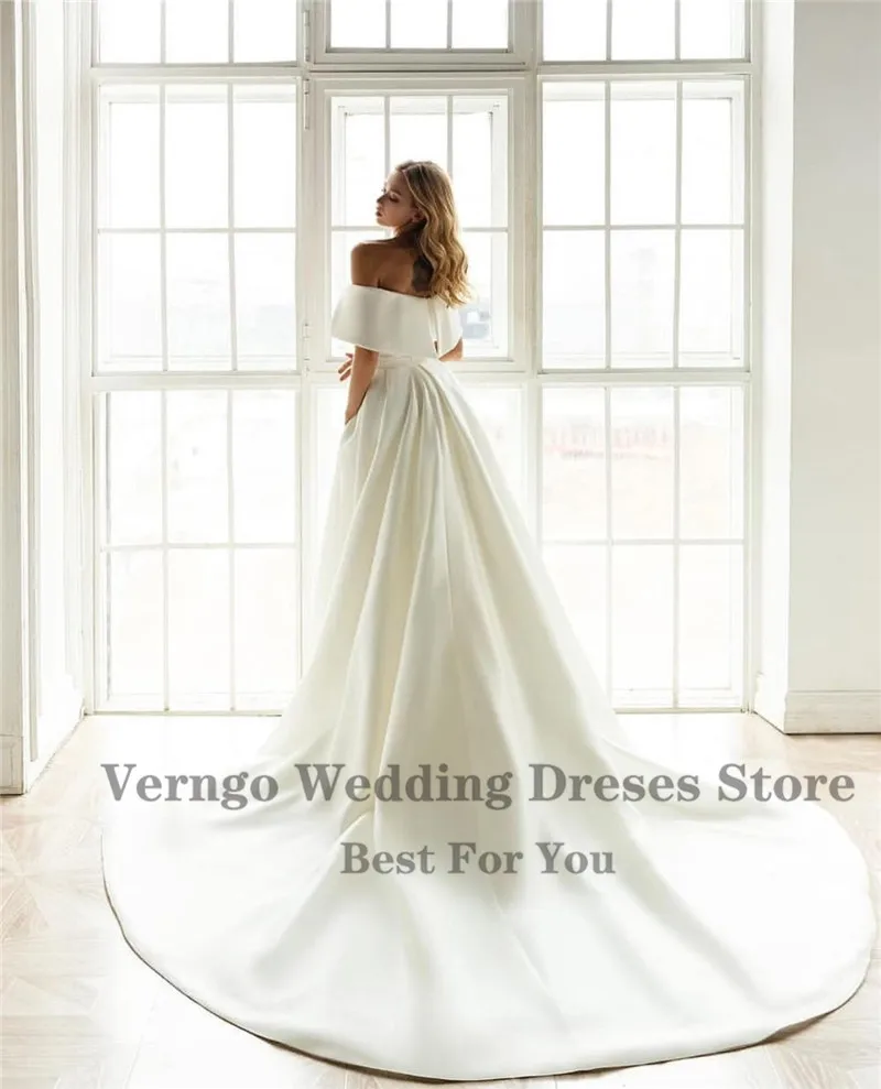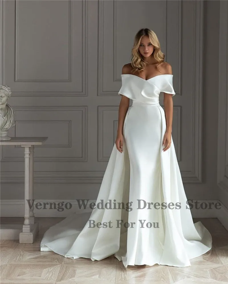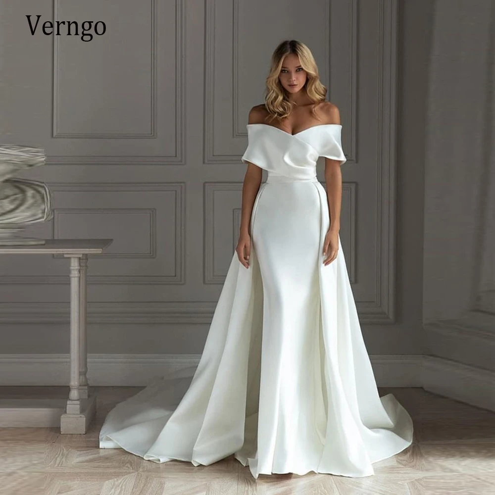 Простое шелковое атласное свадебное платье Verngo со съемным нарукавником и открытыми плечами, Длинные свадебные платья-русалки, женское платье