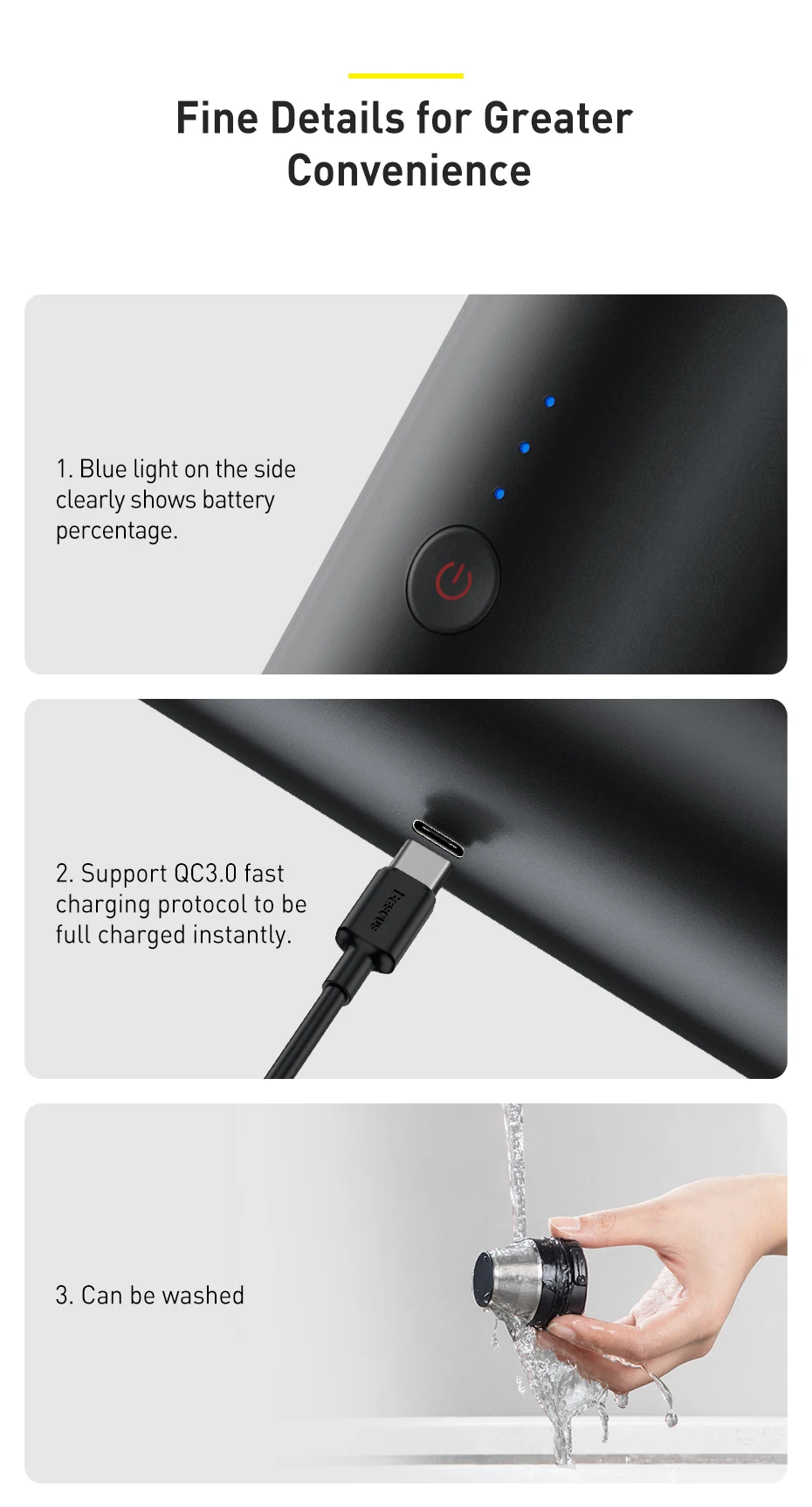 Автомобильный пылесос Baseus, 15000 па, беспроводной мини-пылесос для автомобиля, ручной пылесос со светодиодный светильник кой для очистки салона автомобиля