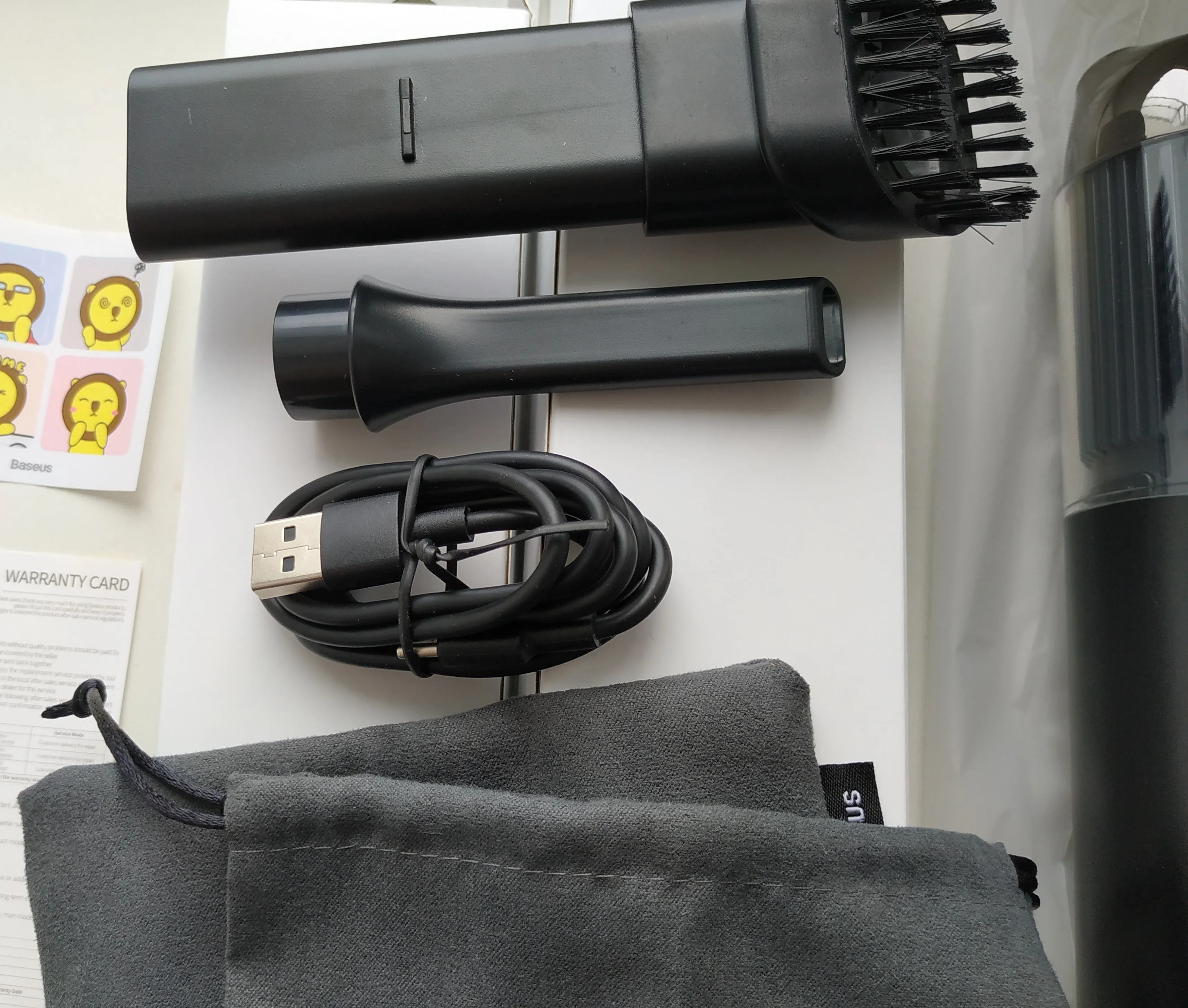 Хороший продукт в целом, дизайн, обработка, достаточная мощность и срок службы батареи, но я хочу, чтобы вы увидели в моем мнении пару улучшений, которые должны принять во внимание, первый аксессуар, который они предоставляют (удлинитель с кистью на конце), который используется для ковер или автомобильных вентиляционных решетки, Щетина такого кисти очень мягкая, деформируясь при первом использовании, они должны быть более устойчивыми, а второе мнение, вам понадобится плоский аксессуар, чтобы можно было всасывать, например, между сиденьями и центральной консолью, так как он не прибывает.