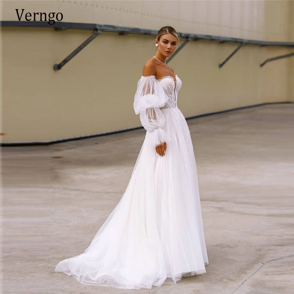 Платье Свадебное ТРАПЕЦИЕВИДНОЕ из фатина со съемными буфами и длинными рукавами