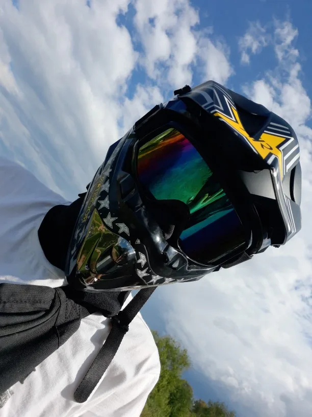 Подшлемник сразу на выброс, он тут как факт наличия не более. Резина у очков жесткая, сильно давит на глаза. У перчаток кругом торчат нитки. В остальном, что я хотел за эти деньги то и получил. Пришло быстро, отправили быстро. Косяков и царапин не заметил.
