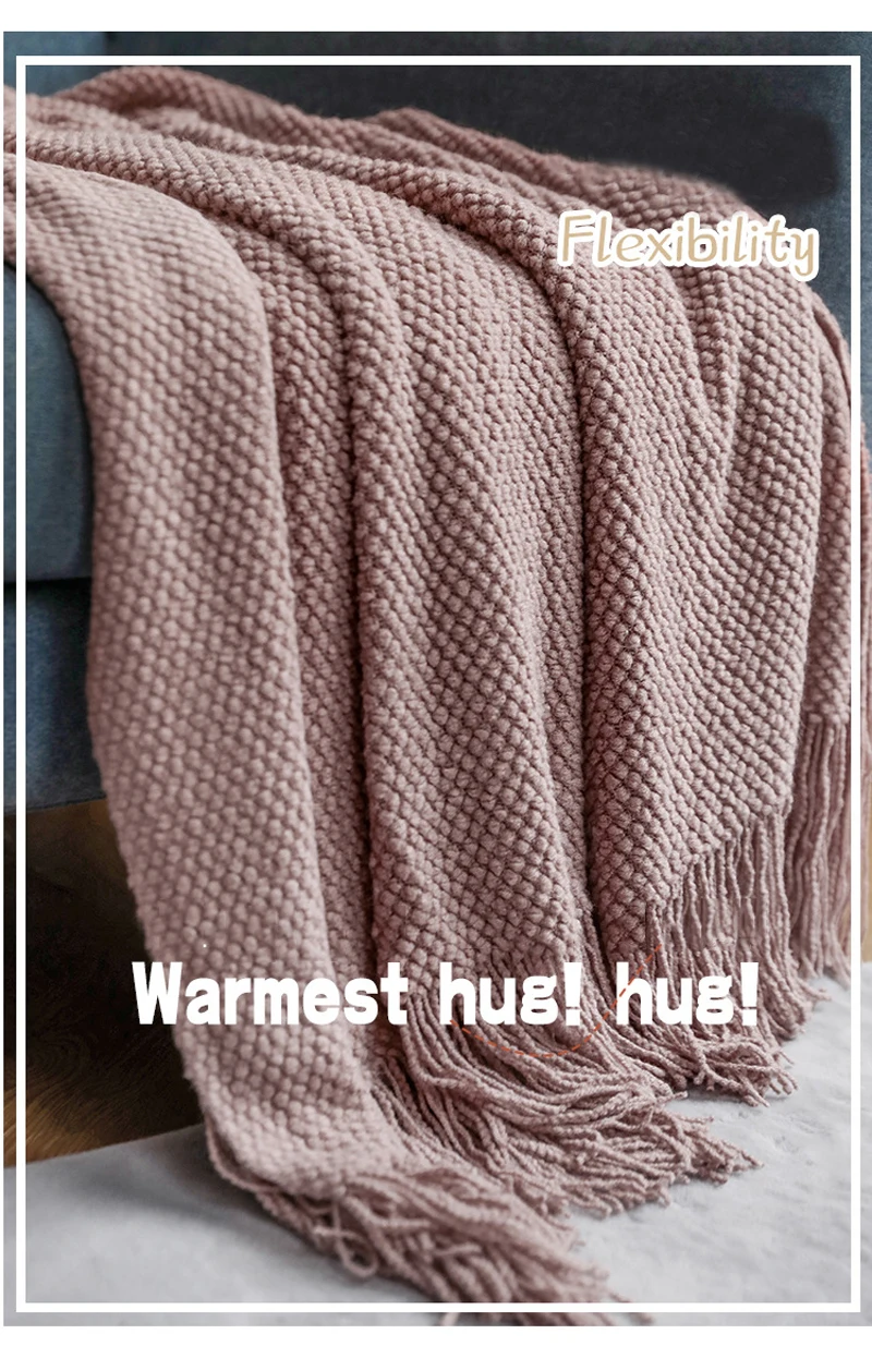 Плед вязаный, s-образный, для дивана, с кисточками, вафельные одеяла