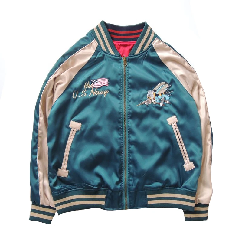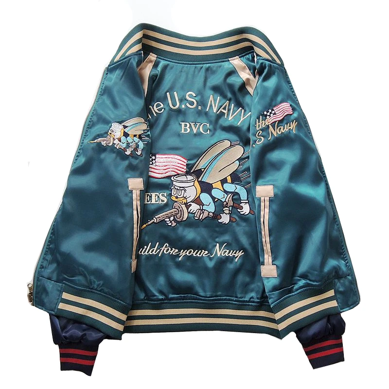 ABOORUN 2021 мужские бейсбольные куртки Yokosuka Bee Emeboridery Harajuku Лоскутная куртка-бомбер для мужчин