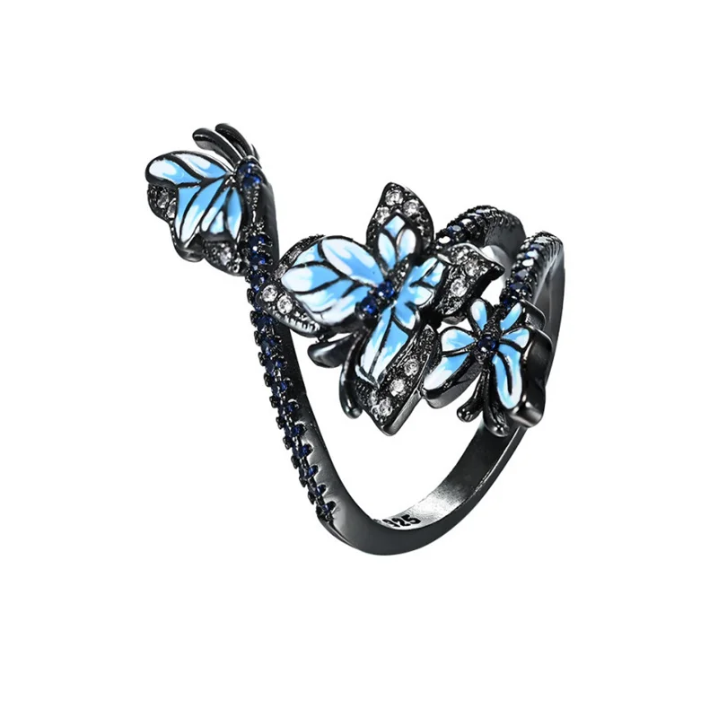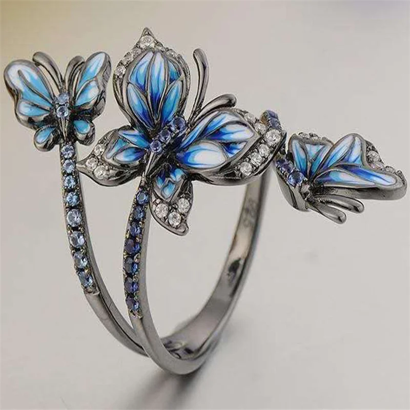 Женское Открытое кольцо с бабочкой, регулируемое кольцо с кристалла...
