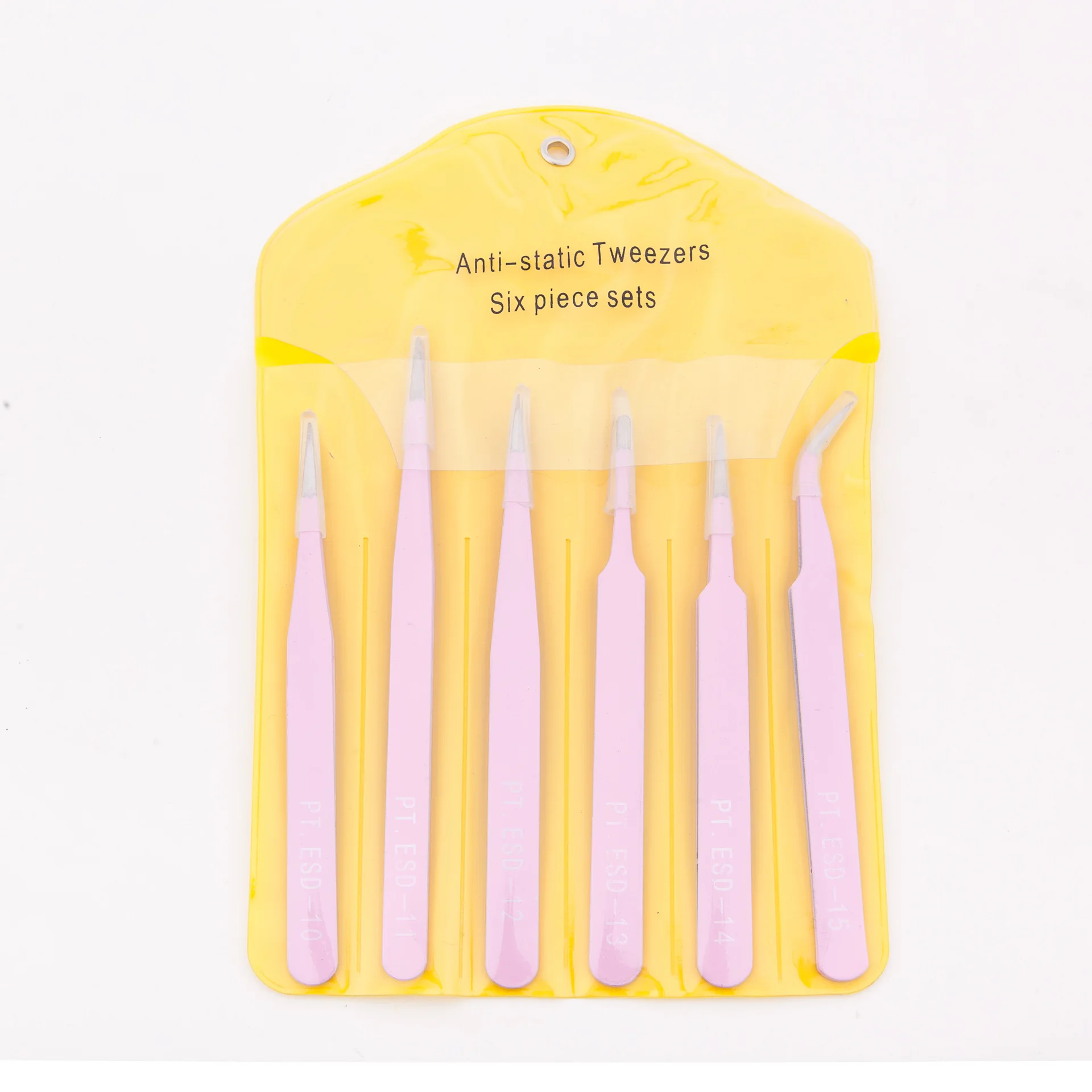 Набор инструментов из 6 щипцов, прецизионный антистатический наконечник ESD, изогнутый, прямой, из нержавеющей стали, быстрое устройство для компьютера, часов