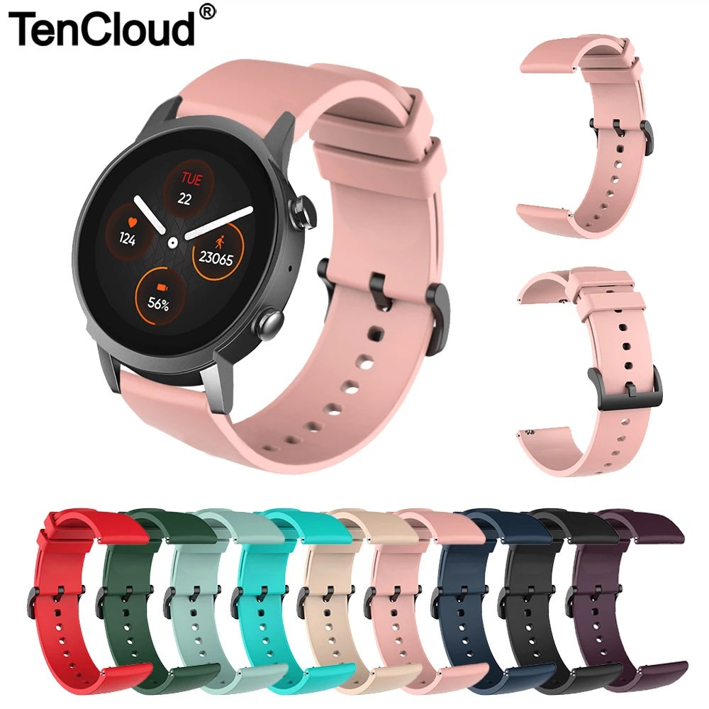 Ремешок силиконовый для Ticwatch E3 GTH E 2, сменный Браслет для часов TicWatch C2 Plus (оникс и платина)