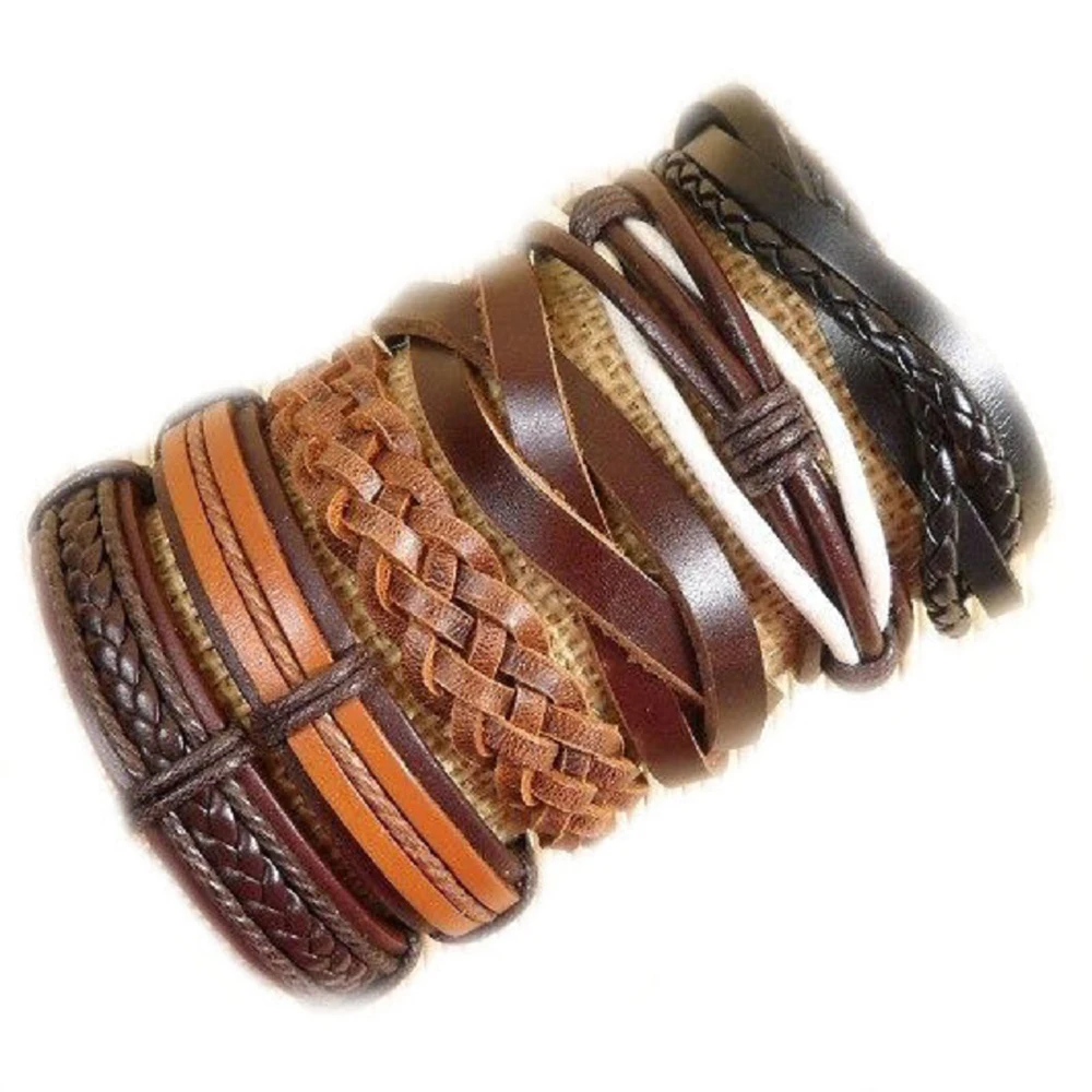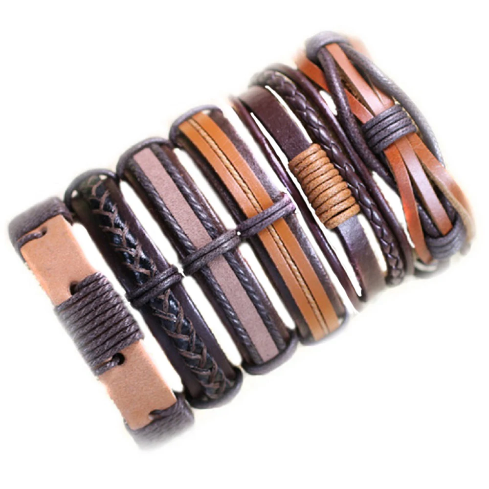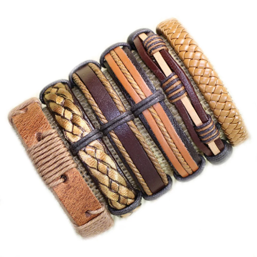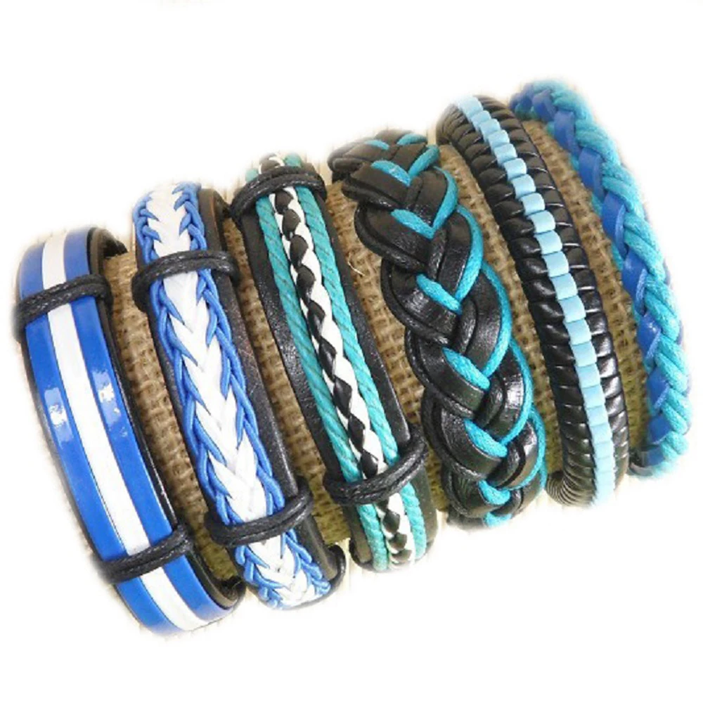 6 шт.лот, очаровательные плетеные кожаные браслеты, 6 шт.