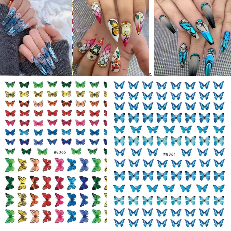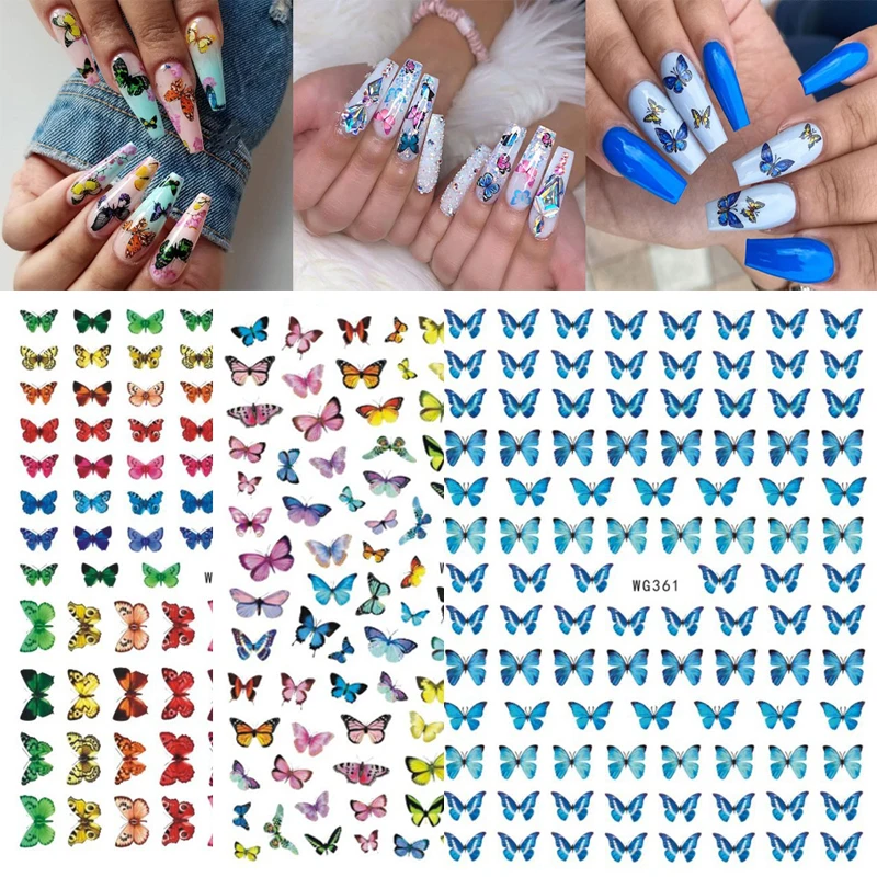 1 шт. 3D наклейки для ногтей синяя красочная бабочка художественная наклейка с клейким оформлением для ногтей дизайнерские наклейки для ногтей