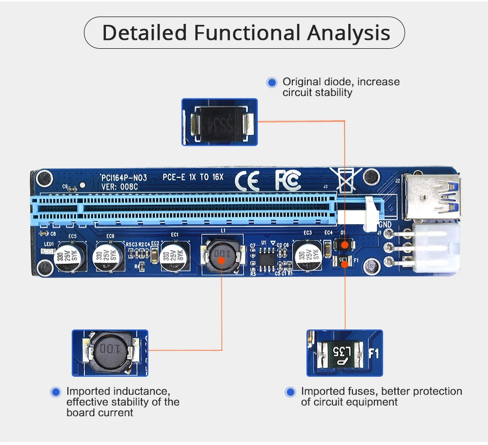 50 шт., Райзер PCIE VER008C, Райзер для видеокарты, Pci Express, US...