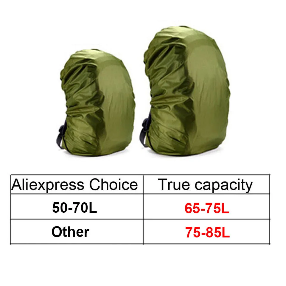 Название: дождевик для рюкзака Цвет: 17 цветов в наличии Размер: Aliexpress выбор: 50-70 л Объем: (65-75л) Aliexpress выбор: другая реальная емкость: (75-85л) Посылка: 1 чехол для рюкзака Супер водонепроницаемый: Не допускайте попадания воды. Водонепроницаемый износостойкий нейлоновый материал может сделать его. Он может противостоять воде 2000 МПа гидравлического давления.