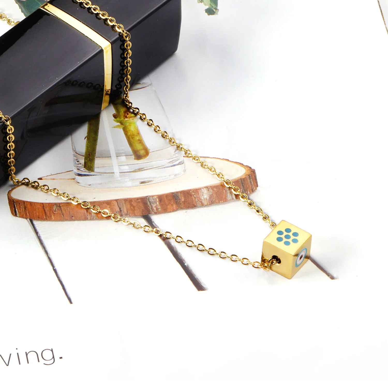 Модное ожерелье LUXUKISSKIDS с квадратным кулоном с голубыми глазами для женщин, золотое ожерелье Серебристые цепи, аксессуары, оптовая продажа