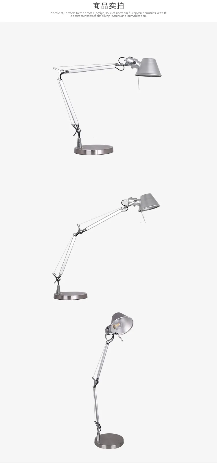 Серебряная настольная лампа модная Светодиодная настольная лампа для настольного компьютера из алюминия E27 Гибкая Регулируемая Настольная лампа для ухода за глазами