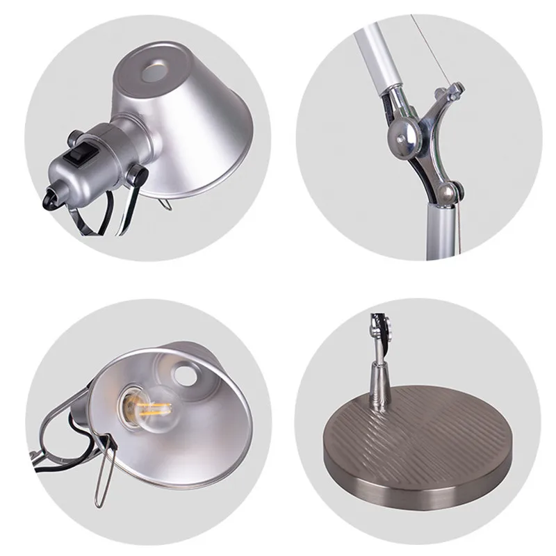 Настольная лампа Tolomeo E27, гибкая, регулируемая, серебристая, алюминиевый