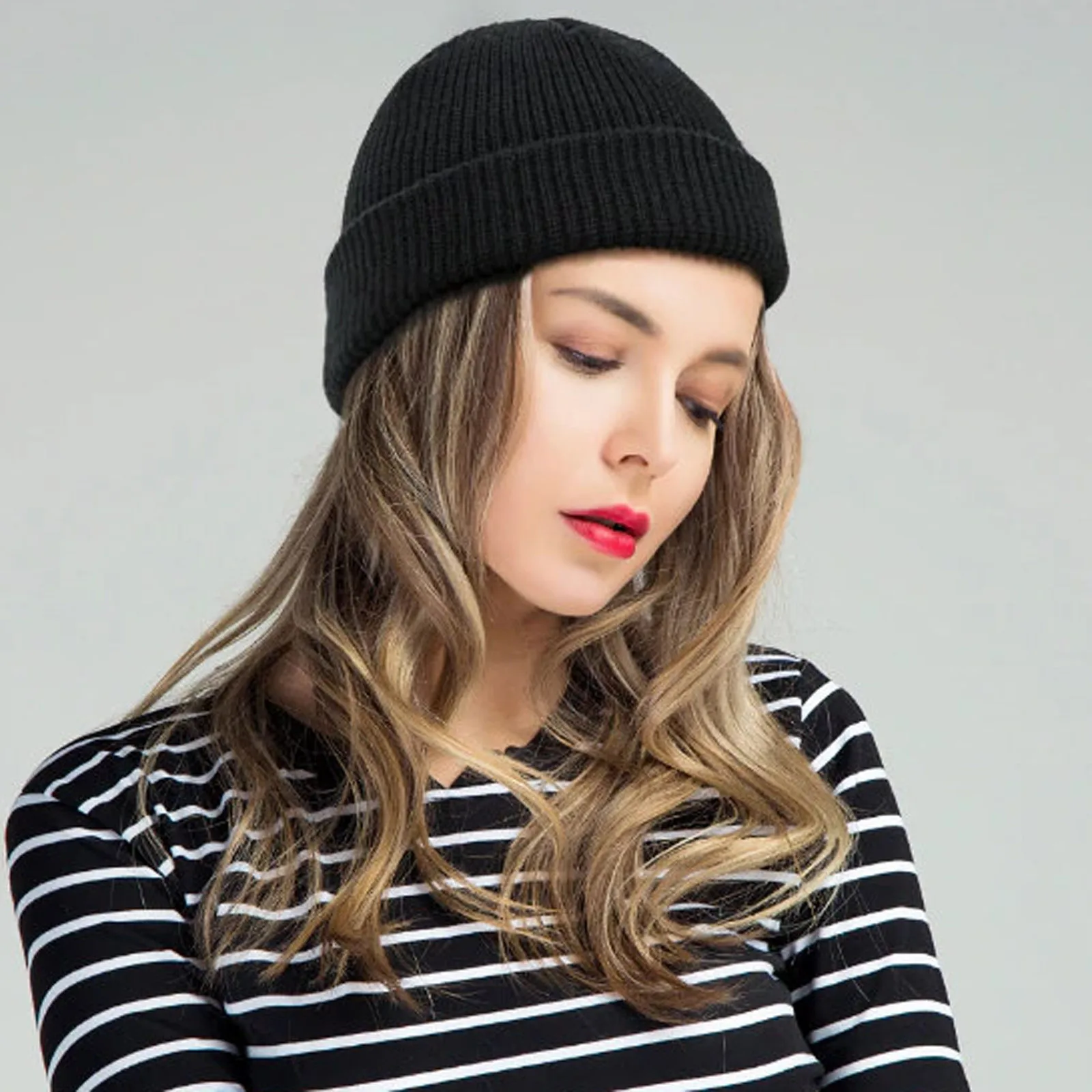 Модная теплая зимняя Повседневная вязаная шапка унисекс, однотонная универсальная Толстая шапка