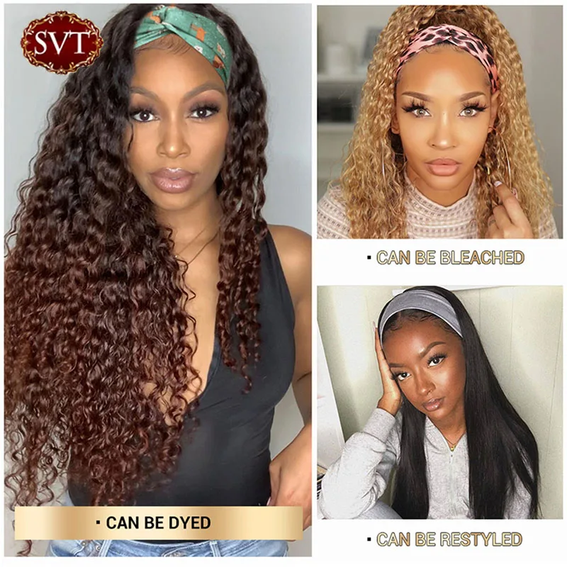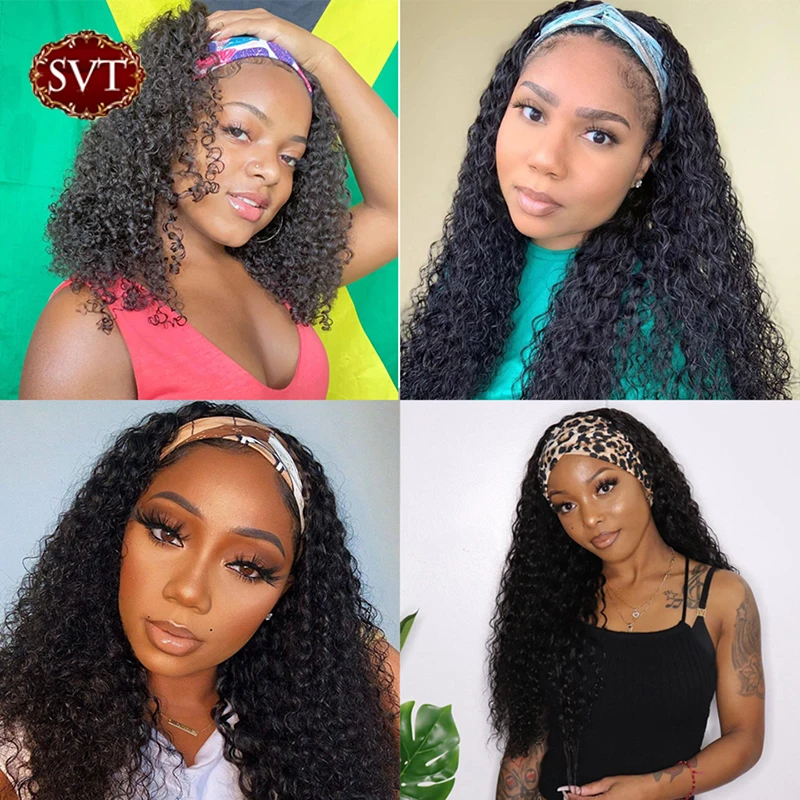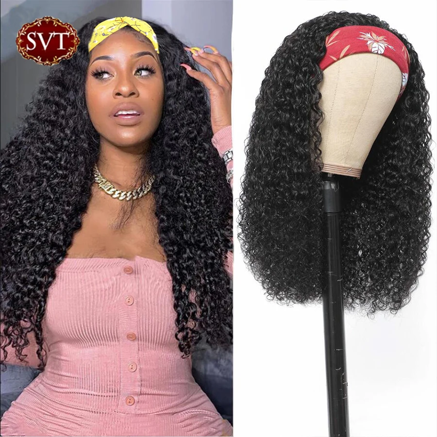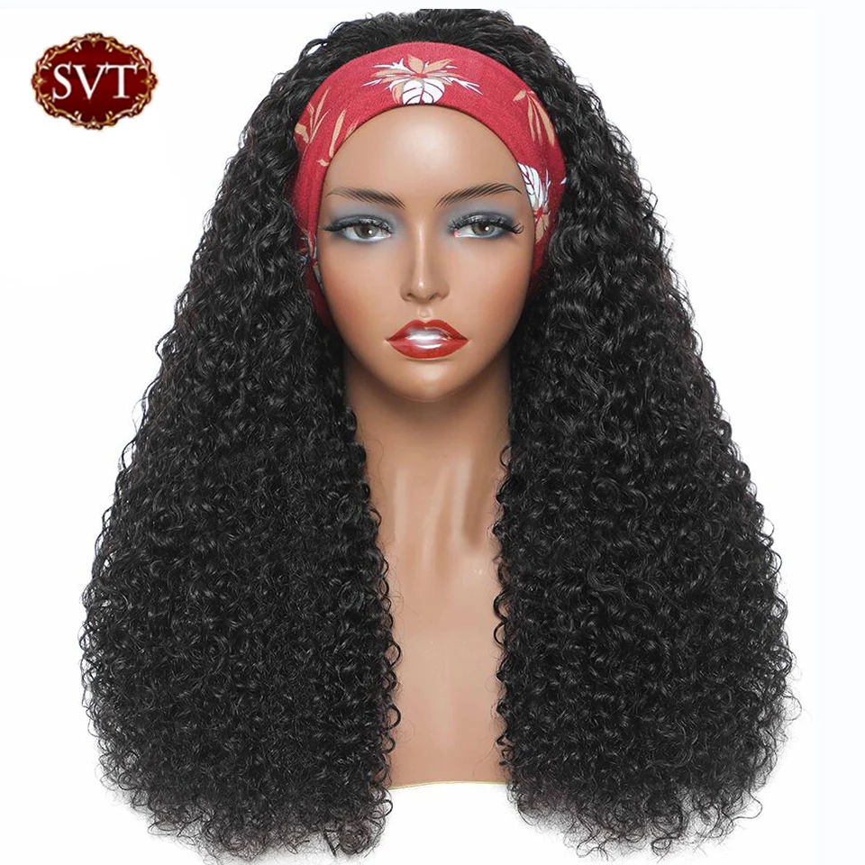 SVT вьющиеся парик с головной повязкой синтетические парики из натуральных волос для черный Для женщин шарф из натурального Цвет афро кудрявый Джерри вьющиеся 100% парики из натуральных волос