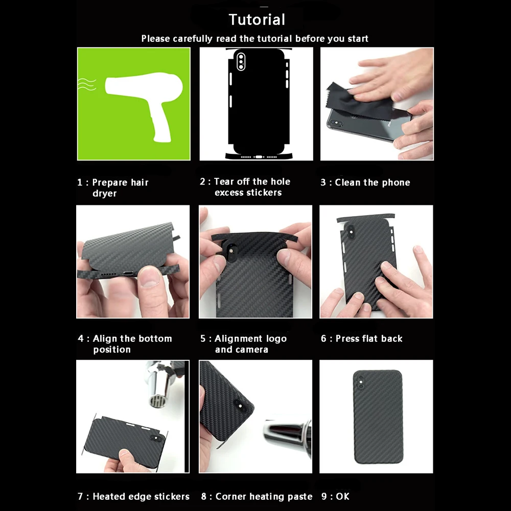 Вопрос: Как я могу наклеить наклейку? A: Наклейте всю часть, затем используйте фен для нагрева, чтобы наклейка сохраняла форму. Вопрос: Как он может достичь лучшего эффекта вставки? A: если возможно, после вставки, носите чехол для телефона около 24 часов или выше, чтобы приклеить его прочно. Вопрос: оставит ли клей после отклеивания наклейки? A: если вы снимите наклейку, она не оставит клей на вашем телефоне.