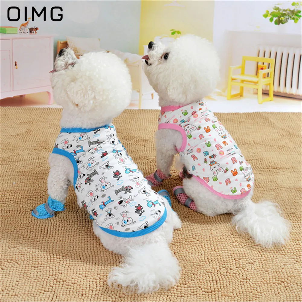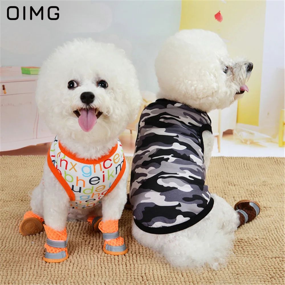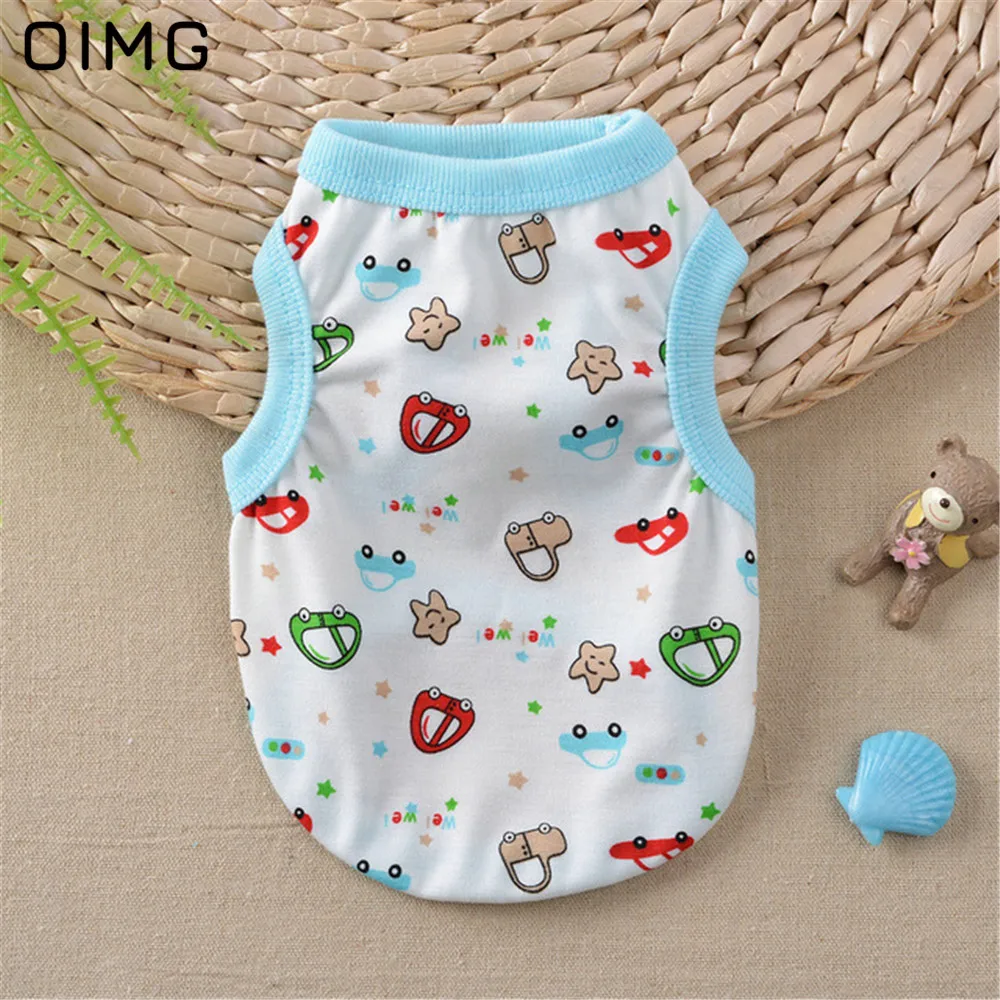 OIMG с изображением кошек и собак из мультфильмов футболки для маленькие собаки одежда летняя дышащая майка для собак Топ панель в форме французского бульдога Чихуахуа Одежда домашний костюм