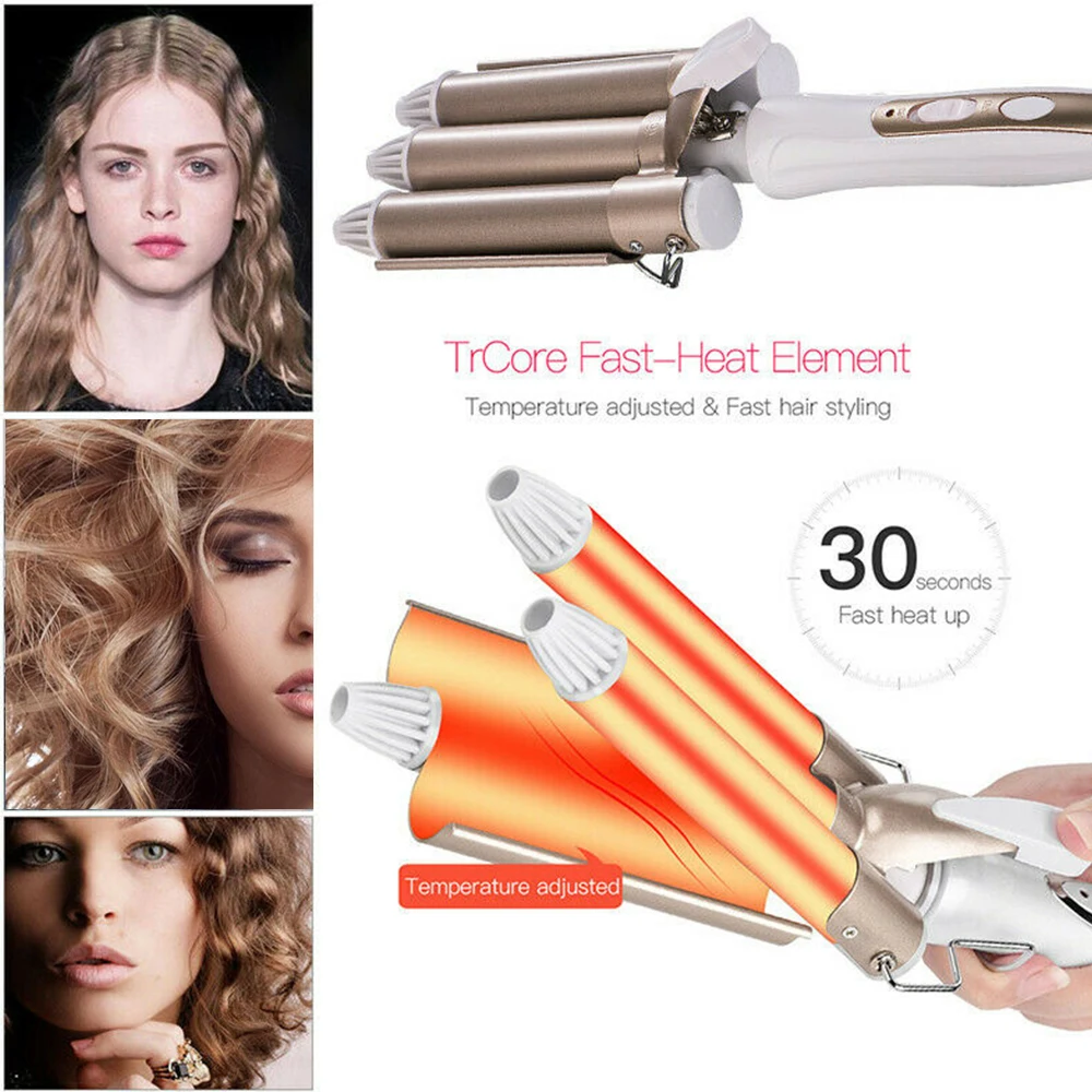 Профессиональные щипцы для завивки волос, стайлер для укладки волос с тремя керамическими бочками, электрические бигуди