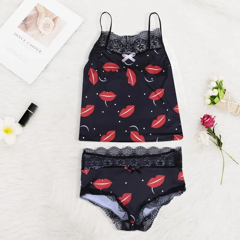 Сексуальное женское нижнее белье, атласное, с принтом в виде губ, э...