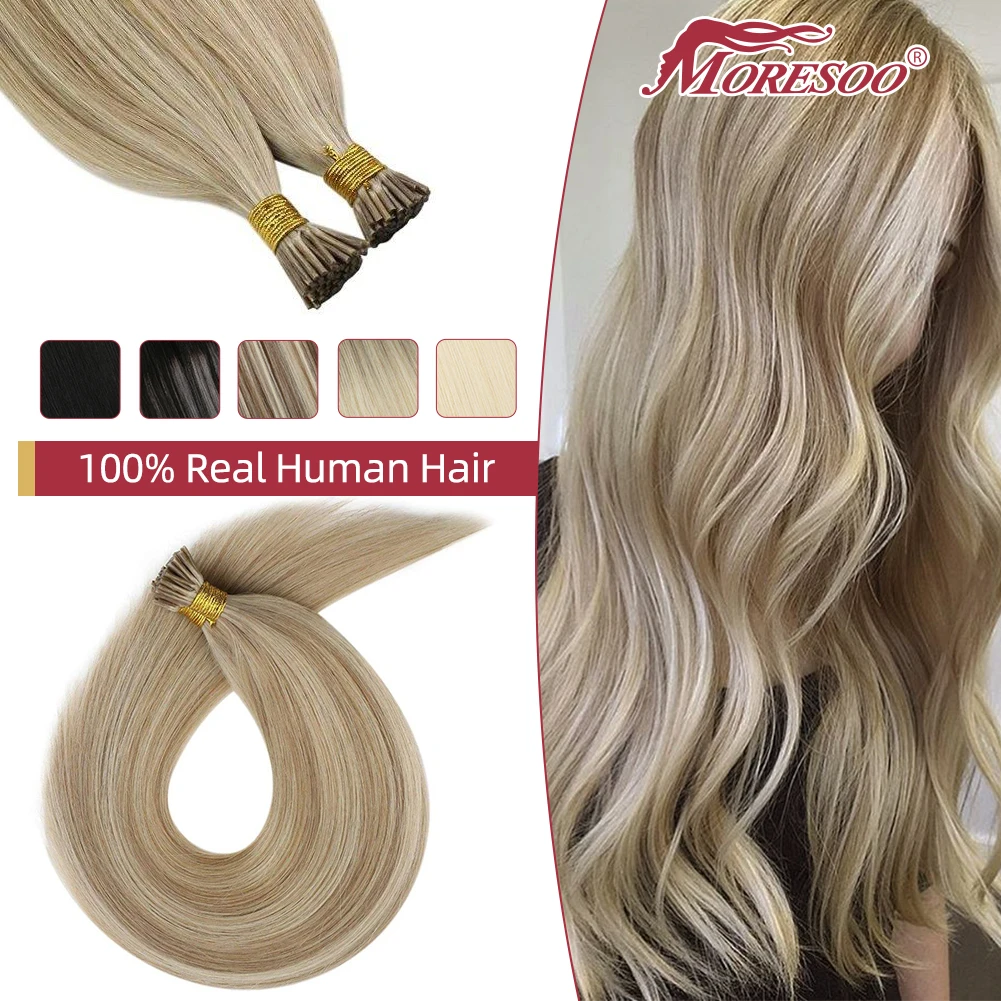 Moresoo Itip наращивание волос, машина для сливания, Remy цвет пепла, блонд, смешанный отбеливатель, блонд, прямые предварительно скрепленные кончики, человеческие волосы