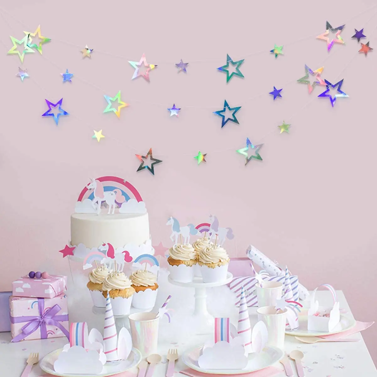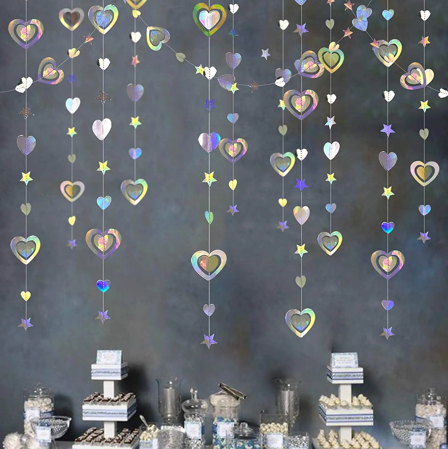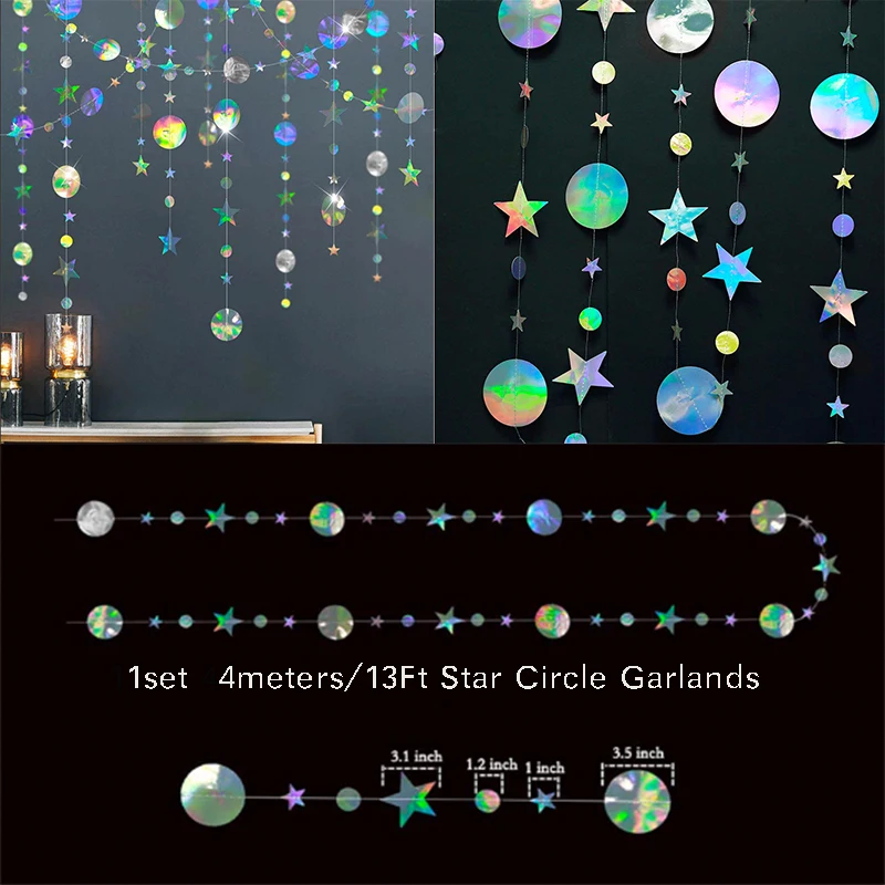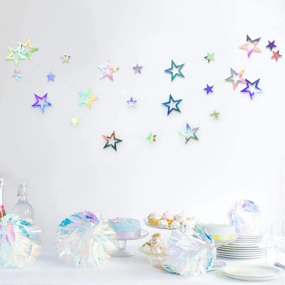 Металлические лазерные бумажные снежинки, радужные ИД Рамадан, мерцающие звезды, луна, гирлянды, счастливые украшения для будущей матери